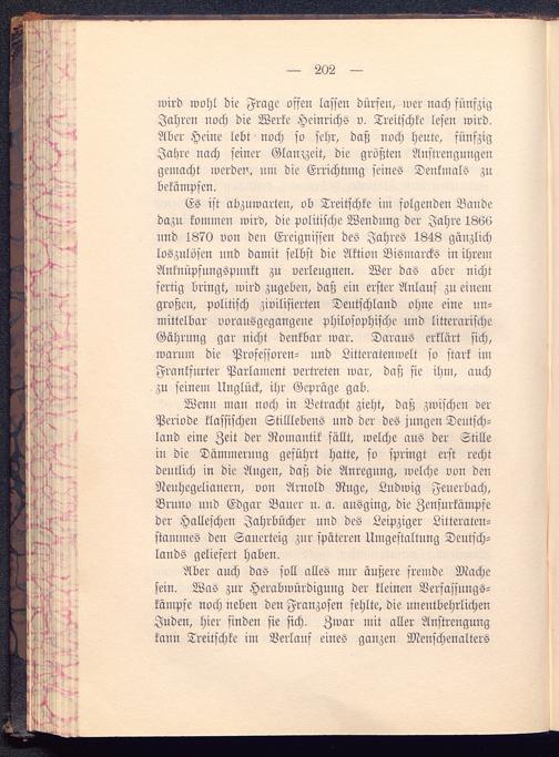 wird wohl die Frage offen lassen dürfen, wer nach fünfzigJahren noch die Werke Heinrichs v. Treitschkc lesen wird.Aber Heine lebt - noch so sehr, daß noch heute, fünfzigJahre nach seiner Glanzzeit, die größten Anstrengungengemacht werden, nm die Errichtung seines Denkmals zubekämpfen.