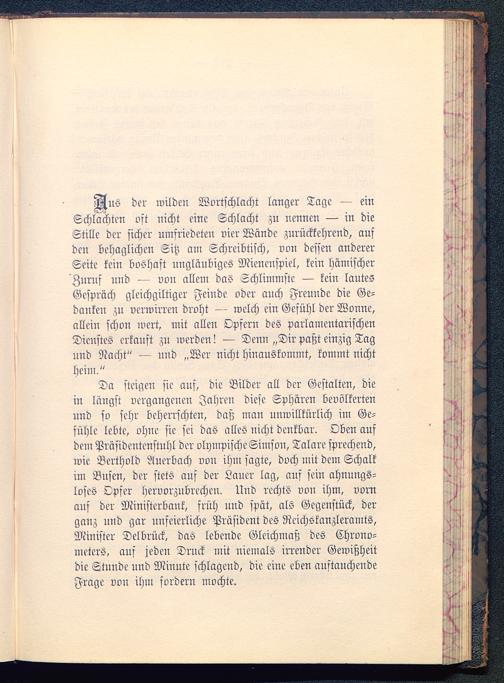 iH^us der wilden Wortschlacht langer Tage — einSchlachten oft nicht eine Schlacht zu nennen — in dieStille der sicher umfriedeten vier Wände zurückkehrend, aufden behaglichen Sitz am Schreibtisch, von dessen andererSeite kein boshaft ungläubiges Mienenspiel, kein hämischerZuruf und — von allem das Schlimmste — kein lautesGespräch gleichgiltiger Feinde oder auch Freunde die Ge-danken zn verwirren droht — welch ein Gefühl der Wonne,allein schon wert, mit allen Opfern des parlamentarischenDienstes erkauft zu werden! — Denn „Dir paßt einzig Tagund Nacht" — und „Wer nicht hinauskommt, kommt nichtheim."