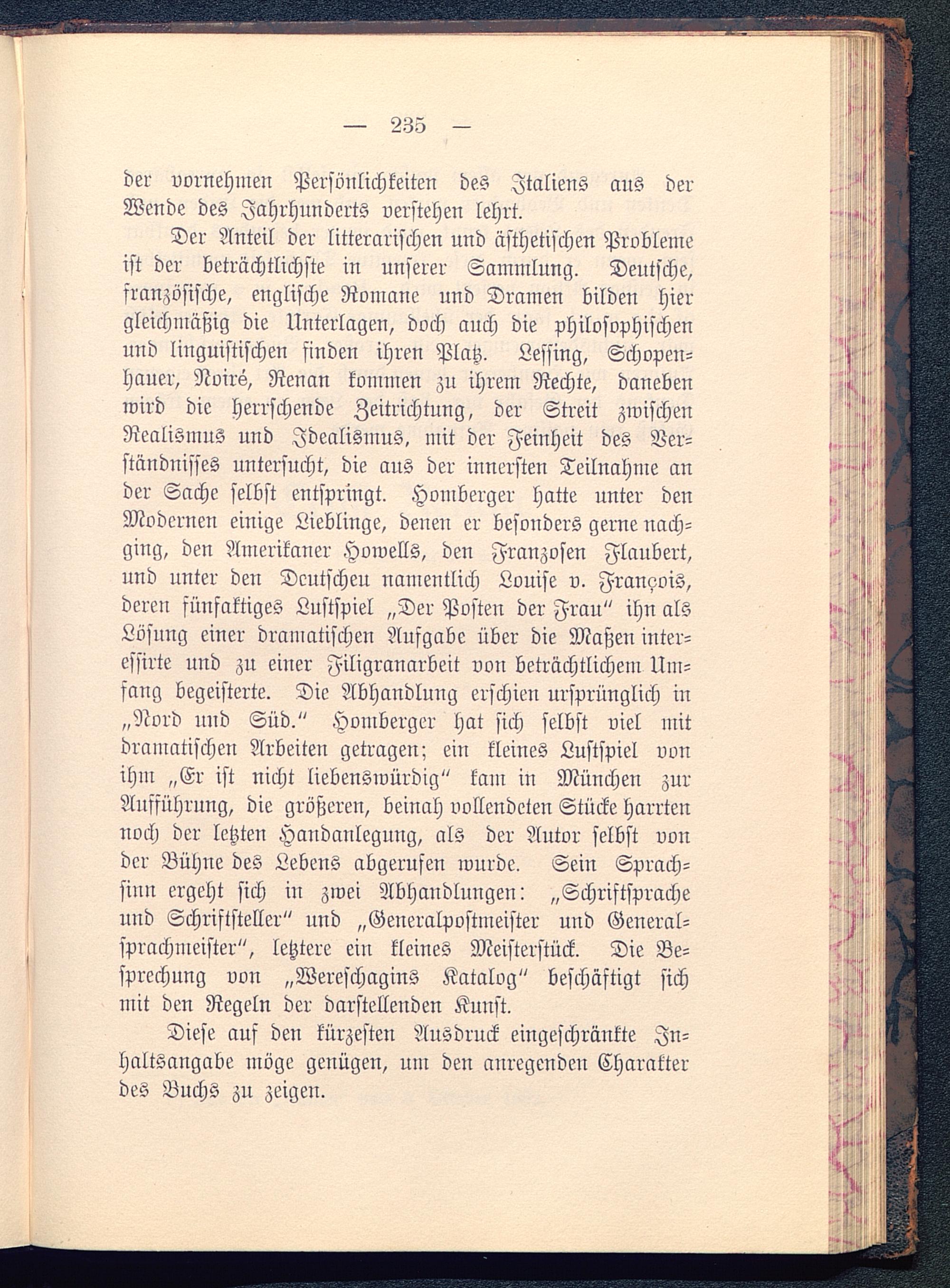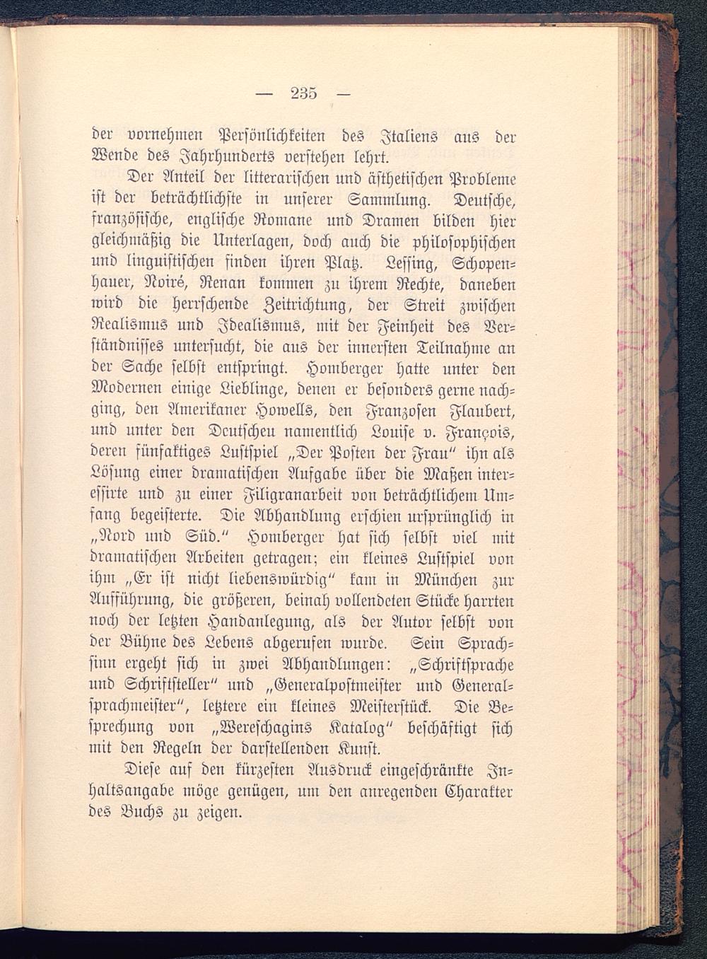 Diese auf den kürzesten Ausdruck eingeschränkte In-haltsangabe möge genügen, um den anregenden Charakterdes Buchs zu zeigen.