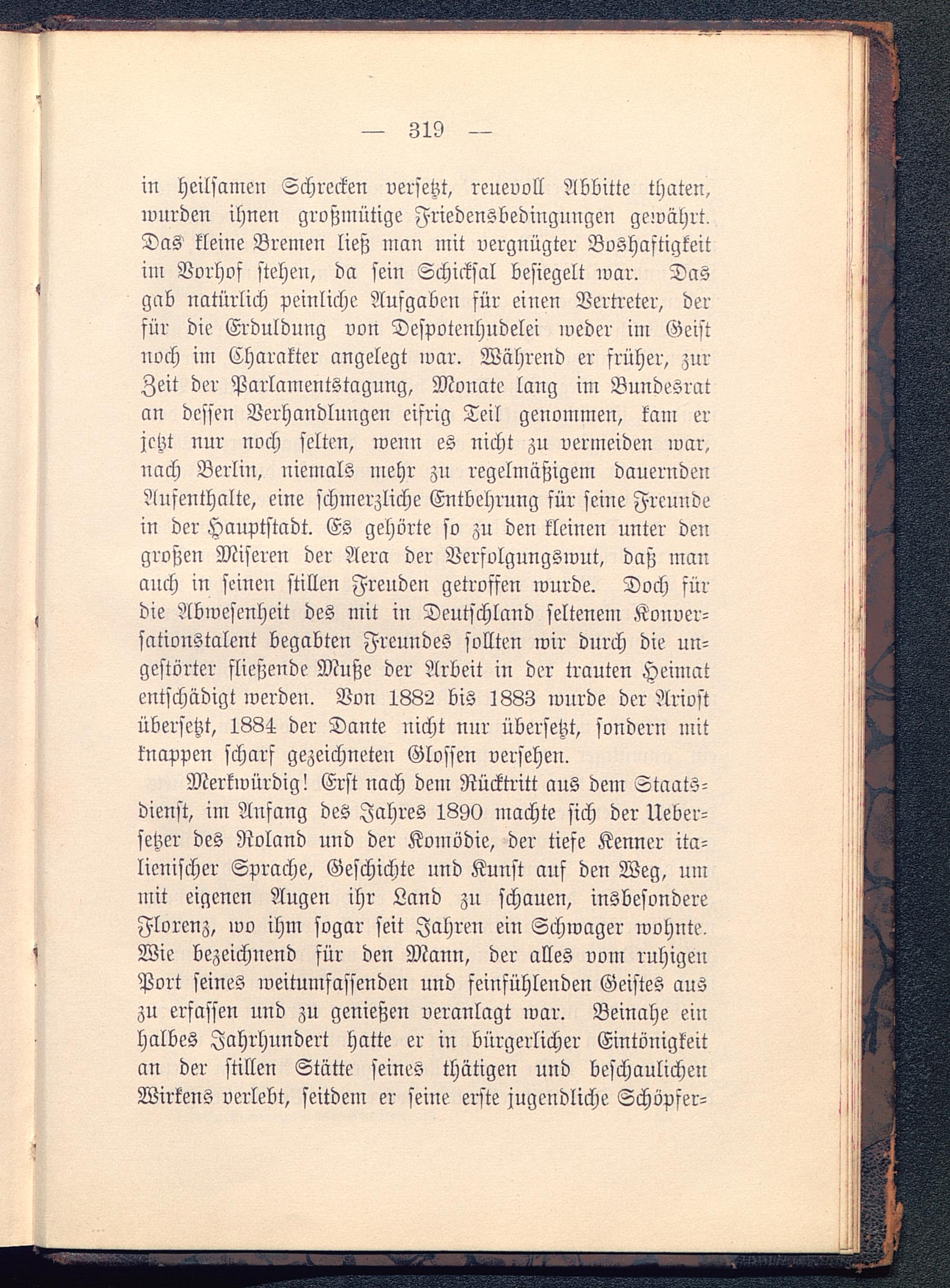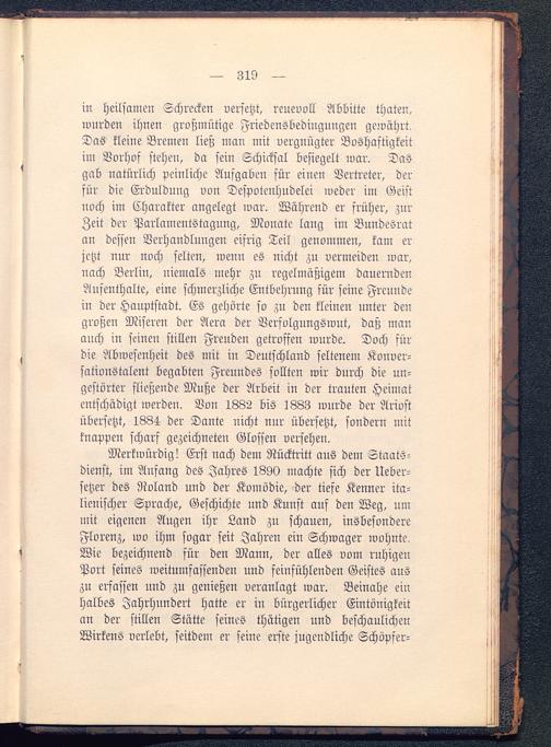 sationstaleut begabten Freundes sollten wir durch die un-gestörter fließende Muße der Arbeit in der trauten Heimatentschädigt werden. Von 1882 bis 1883 wnrde der Ariostübersetzt, 1834 der Dante nicht nur übersetzt, sondern mitknappen scharf gezeichneten Glossen versehen.