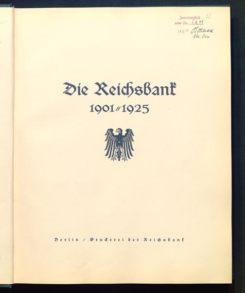 ^/Inventarisiert —unter No...../^c'^ ^ÄM^^-^. ^/K,'^,,Die Reichsbank1y0l-ly2ZÄerlin / Druckerei der Reichsbank