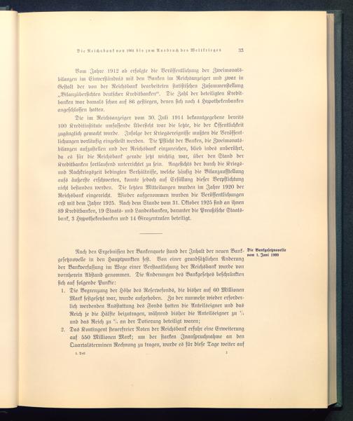 1. Die Begrenzung der Höhe des Reservefonds, die bisher auf 60 MillionenMark festgesetzt war, wurde aufgehoben. Zu der nunmehr wieder erforder-lich werdenden Ausstattung des Fonds hatten die Anteilseigner und dasReich je die Hälfte beizutragen, während bisher die Anteilseigner zu ^und das Reich zu ^ an der Dotierung beteiligt waren;