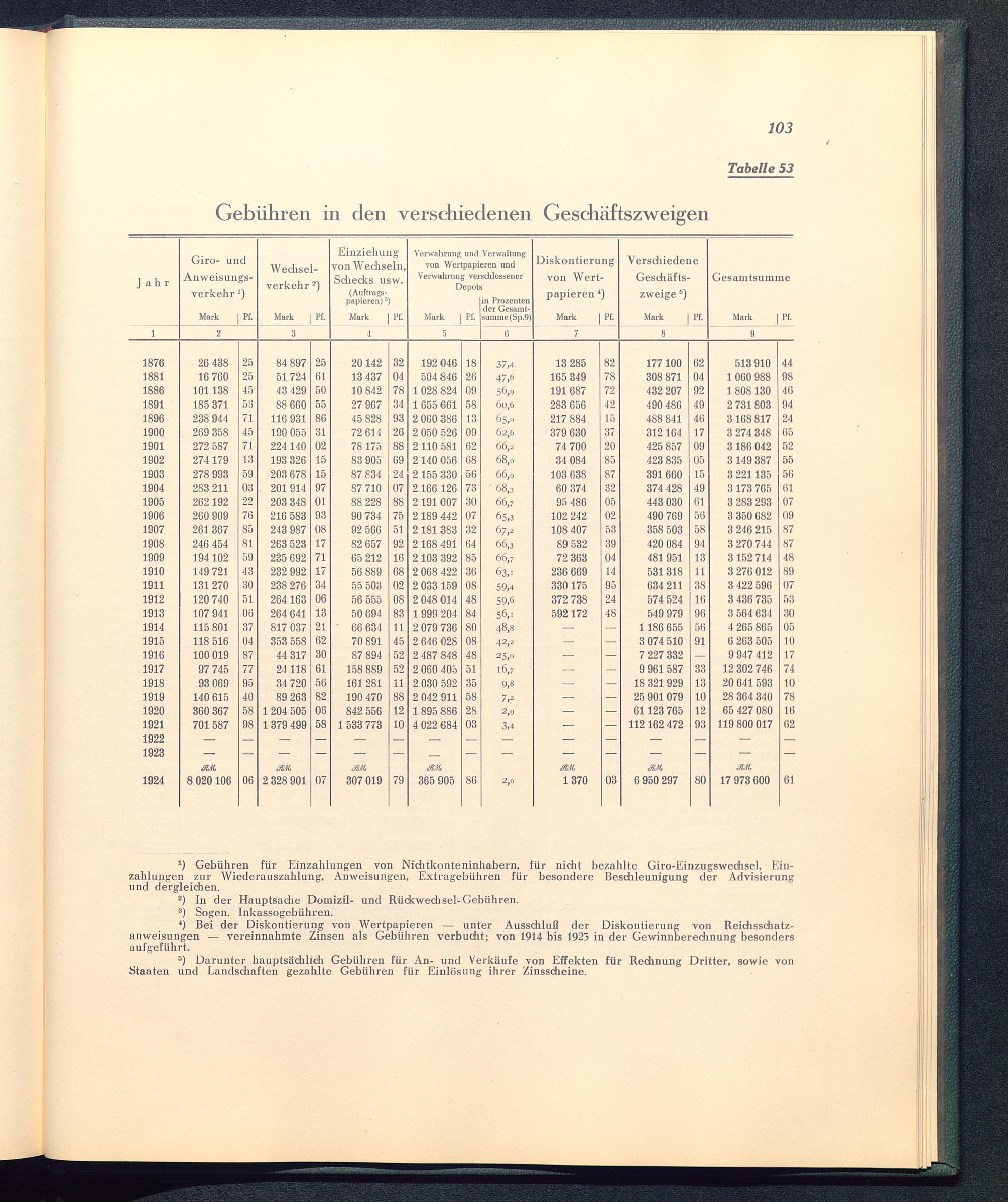 4) Lei 6er DisKontisrunZ von V/ertpspiereu — unter ^ussckluk der Diskontierung von Keicnsscjiati!-Anweisungen — versinnaninte Minsen als Oebübren vsrbuont; von 1914 bis 192? in cler (^ewinnbsreeknung besonderssukgeküln t.