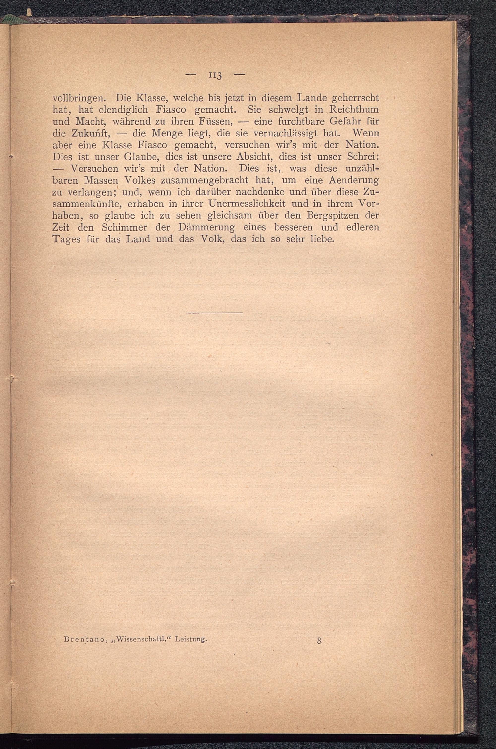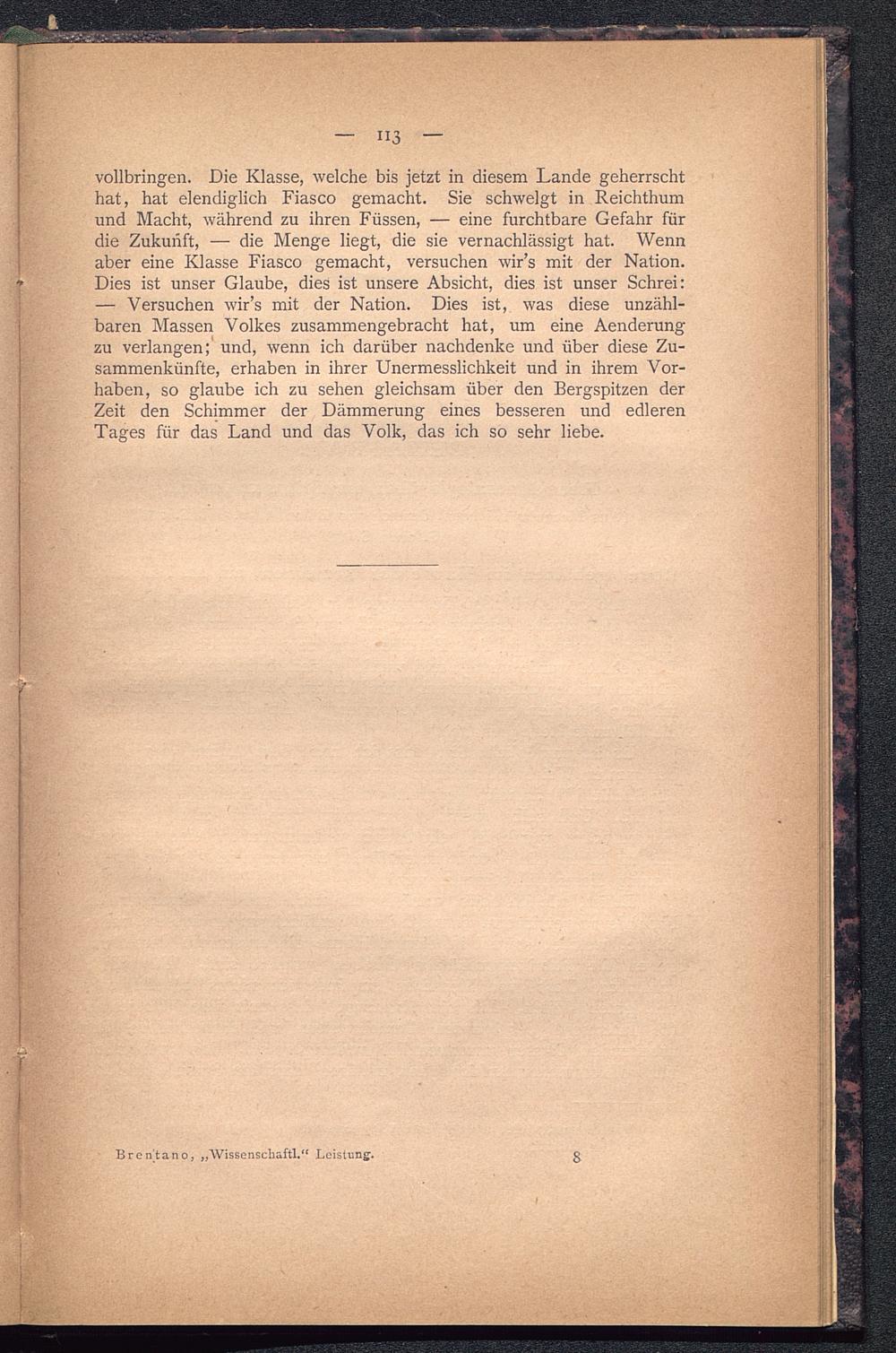 vollbringen. Die Klasse, welche bis jetzt in diesem Lande geherrschthat, hat elendiglich Fiasco gemacht. Sie schwelgt in Reichthumund Macht, während zu ihren Füssen, — eine furchtbare Gefahr fürdie Zukunft, — die Menge liegt, die sie vernachlässigt hat. Wennaber eine Klasse Fiasco gemacht, versuchen wir’s mit der Nation.Dies ist unser Glaube, dies ist unsere Absicht, dies ist unser Schrei:— Versuchen wir’s mit der Nation. Dies ist, was diese unzähl-baren Massen Volkes zusammengebracht hat, um eine Aenderungzu verlangen; und, wenn ich darüber nachdenke und über diese Zu-sammenkünfte, erhaben in ihrer Unermesslichkeit und in ihrem Vor-haben, so glaube ich zu sehen gleichsam über den Bergspitzen derZeit den Schimmer der Dämmerung eines besseren und edlerenTages für das Land und das Volk, das ich so sehr liebe.