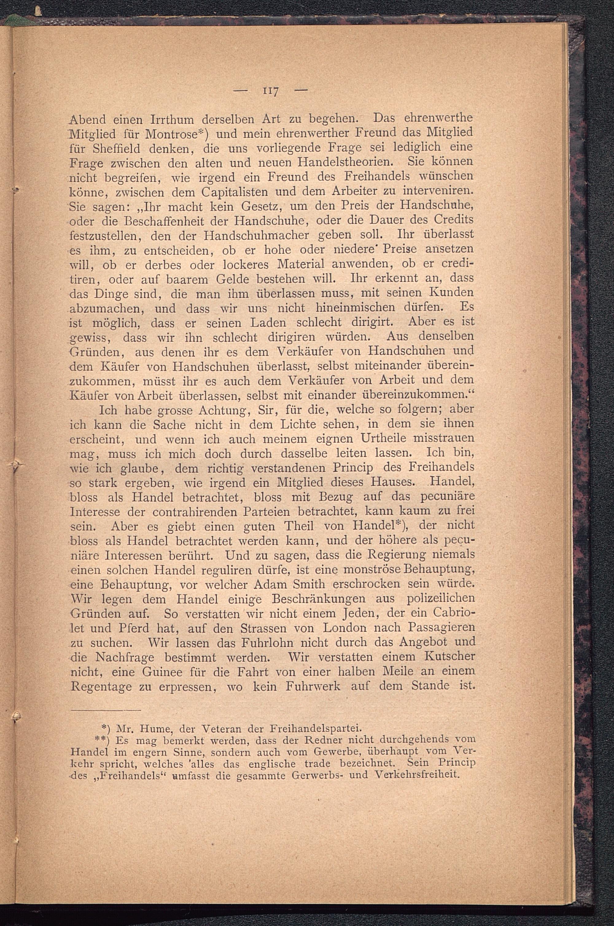 *) Mr, Hume, der Veteran der Freihandelspartei.
