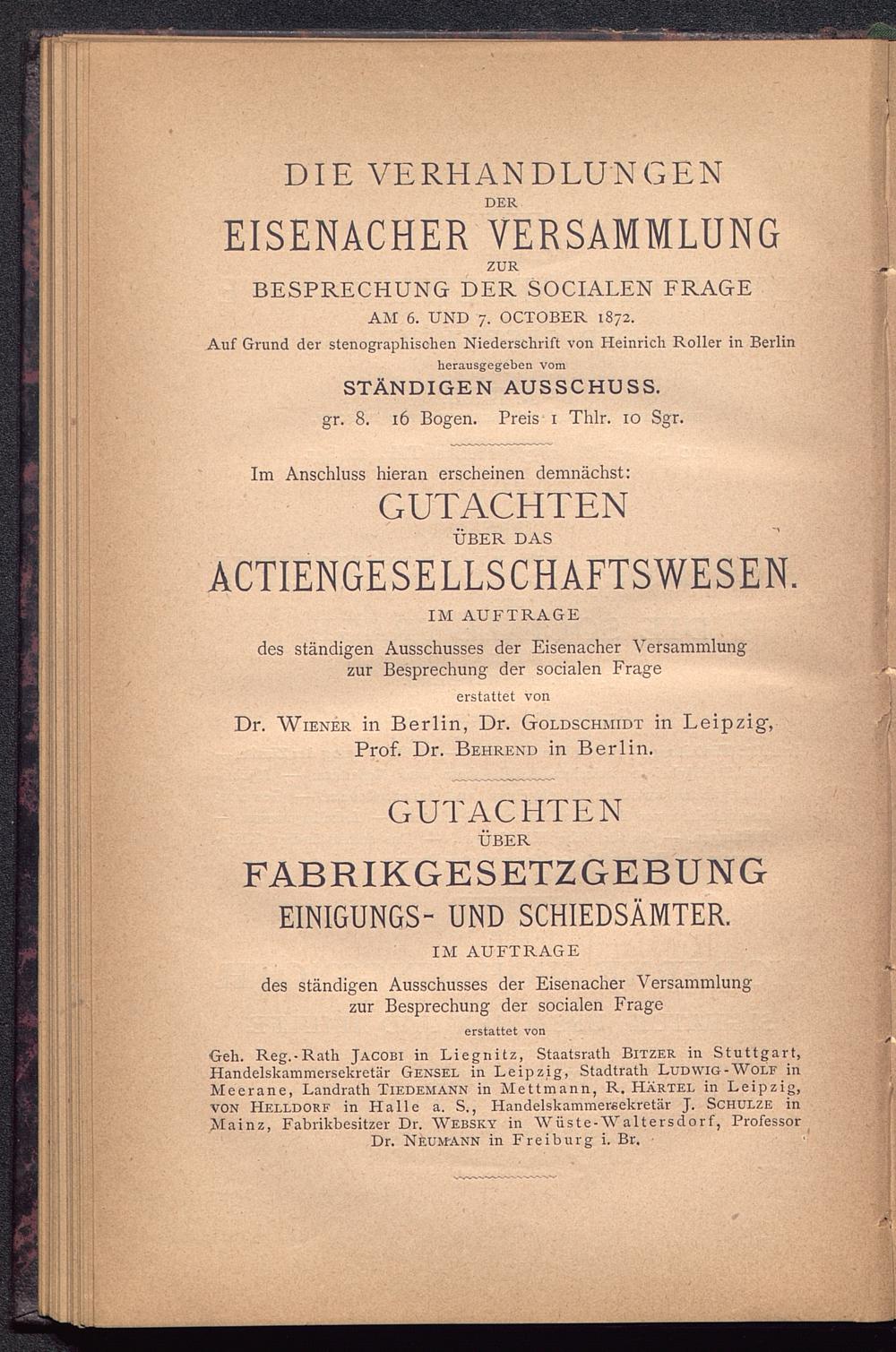 des ständigen Ausschusses der Eisenacher Versammlungzur Besprechung der socialen Frage