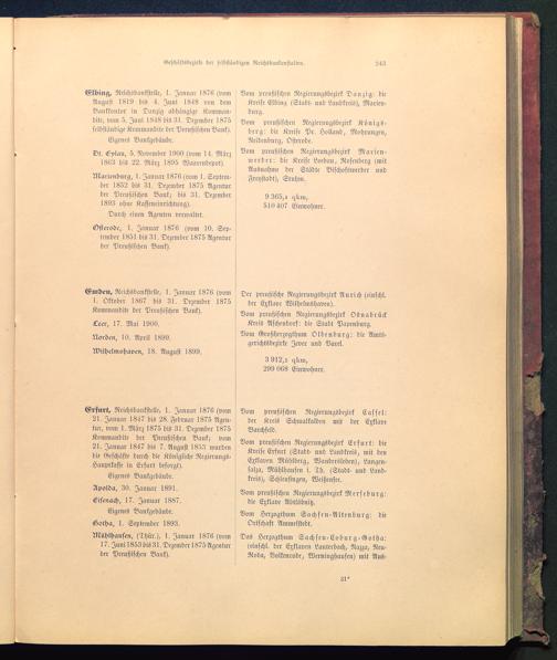 Erfurt , Neichsbankstelle, 1. Iauuar 1876 (vom21. Januar 1847 bis 28. Februar 1875 Agen-tur, vom 1. März 1875 bis 31. Dezember 1875Kommandite dcr Preußischcn Bank/ vom21. Iauuar 1847 bis 7. August 1853 wurdendie Geschäfte durch die Königliche Negierungs-Hauptkasse iu Erfurt besorgt).