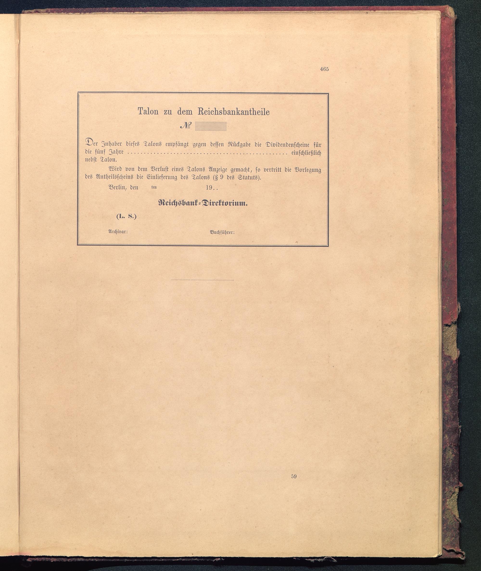 Wird von dem Verlust eines Talons Anzeige gemacht, so vertritt die Vorlegungdes Anthcilsscheius die Einlieferung des Talons (Z 9 des Statuts).