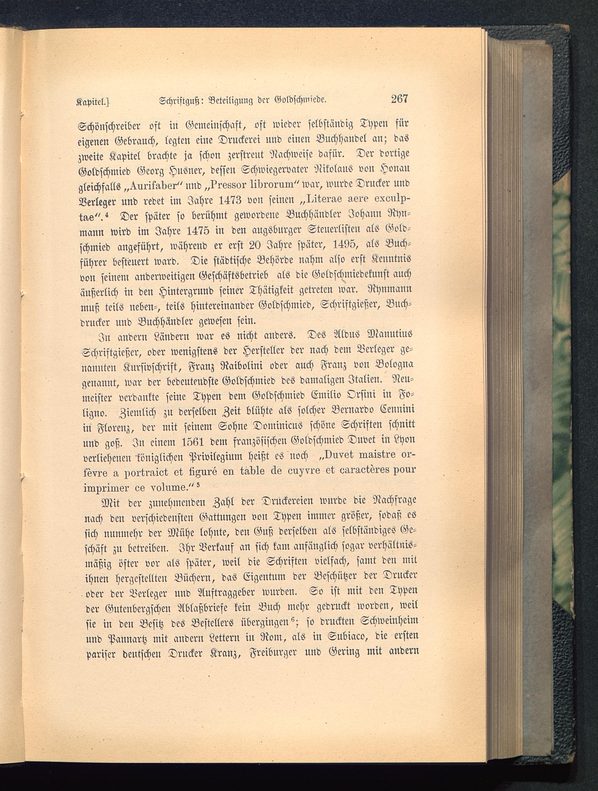 Schönschreiber oft in Gemeinschaft, oft wieder selbständig Typen füreigenen Gebrauch, legten eine Druckerei und einen Buchhandel an; daszweite Kapitel brachte ja schon zerstreut Nachweise dafür. Der dortigeGoldschmied Georg Husner, dessen Schwiegervater Nikolaus von Honaugleichfalls „^uritaber" nud „I'l'SLsor lidroruin" war, wurde Drucker undVerleger und redet im Jahre 1473 von seinen „I^itsras g.er? exonlx-ws".4 Der später so berühmt gewordene Buchhändler Johann Rhn-mann wird im Jahre 1475 in den augsburger Stcuerlifteu als Gold-schmied angeführt, während er erst 20 Jahre später, 1495, als Buch-führer besteuert ward. Die städtische Behörde nahm also erst Kenntnisvon seinem anderweitigen Geschäftsbetrieb als die Goldsckmnedetunst auchäußerlich in den Hintergrund seiner Thätigkeit getreten war. Rhnmaunmuß teils neben-, teils hintereinander Goldschmied, Schristgicßer, Buch-drucker und Buchhändler gewesen sein.