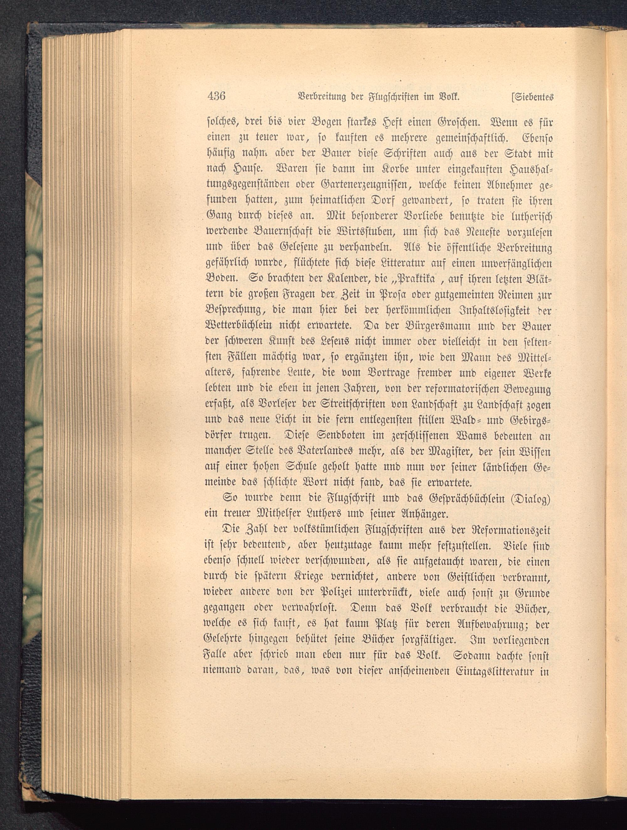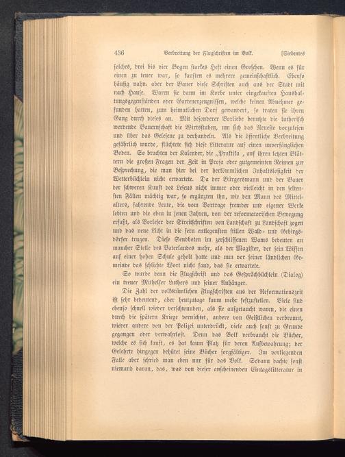 solches, drei bis vier Bogen starkes Heft einen Groschen. Wenn es füreinen zu teuer war, so kauften es mehrere gemeinschaftlich. Ebensohäufig nahm aber der Bauer diese Schriften auch aus der Stadt mitnach Hause. Waren sie dann im Korbe unter eingekauften Haushal-tungsgegenständen oder Gartenerzeugnissen, welche keinen Abnehmer ge-funden hatten, zum heimatlichen Dorf gewandert, so traten sie ihrenGang durch dieses an. Mit besonderer Borliebe benutzte die lutherischwerdende Bauernschaft die Wirtsstuben, um sich das Neueste vorzulesenund über das Gelesene zu verhandeln. Als die öffentliche Verbreitunggefährlich wurde, flüchtete sich diese Litteratur auf einen unverfänglichenBoden. So brachten der Kalender, die „Praktika , auf ihren letzten Blät-tern die großen Fragen der Zeit in Prosa oder gutgemeinten Reimen zurBesprechung, die man hier bei der herkömmlichen Inhaltslosigkeit derWctterbüchlein nicht erwartete. Da der Bürgersmann und der Bauerder schweren Kunst des Lesens nicht immer oder vielleicht in den selten-sten Fällen mächtig war, so ergänzten ihn, wie den Mann des Mittel-alters, fahrende Leute, die vom Vortrage fremder und eigener Werkelebten und die eben in jenen Jahren, von der reformatorischen Bewegungerfaßt, als Vorleser der Streitschriften von Landschaft zu Landschaft zogenund das neue Licht in die fern entlegensten stillen Wald- und Gebirgs-dörfer trugen. Diese Sendboten im zerschlissenen Wams bedeuten anmancher Stelle des Vaterlandes mehr, als der Magister, der sein Wissenauf einer hohen Schule geholt hatte und nun vor seiner ländlichen Ge-meinde das schlichte Wort nicht fand, das sie erwartete.
