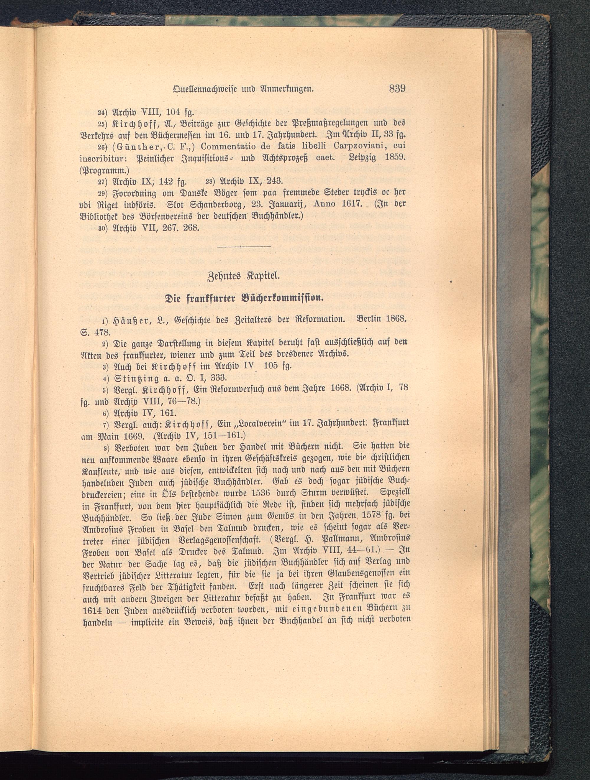 25) Kirchhofs, A., Beiträge zur Geschichte der Preßmaßregctungen und desVerkehrs auf den Büchermessen im 16. und 17. Jahrhundert. Im Archiv II, 33 fg.