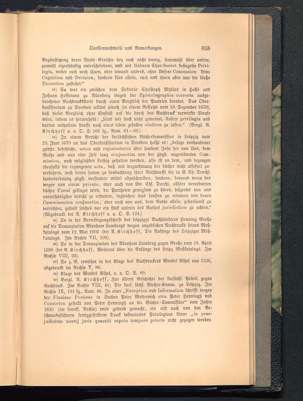 ss) So in der Verteidigungsschrift des leipziger Buchhändlers Henning Große auf die Denunziation Abraham Lambergs wegen angeblichen Nachdrucks seines Meß-katalogs vom 12. Mai 1602 (bei A. Kirchhofs, Die Anfänge des Leipziger Mcß-katalogs. Im Archiv VII, 109).