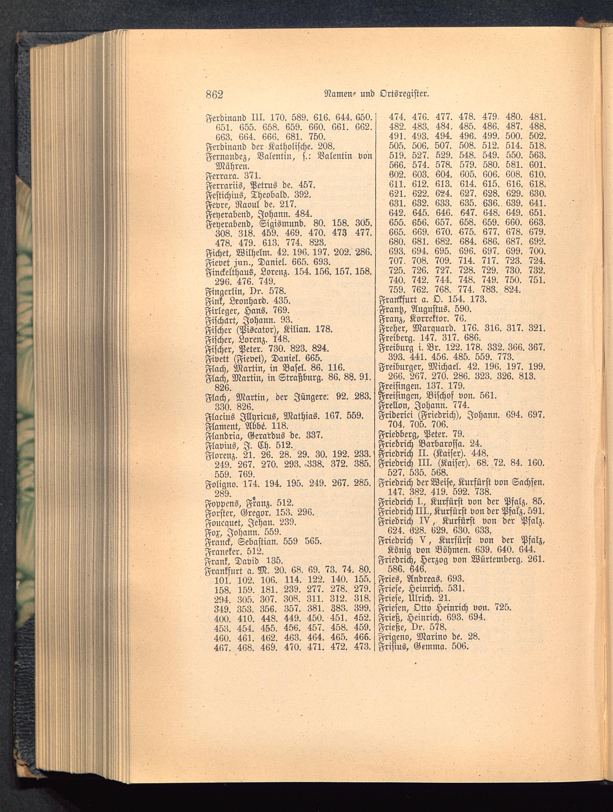 586. 646.Fries, Andreas. 693.Friese, Heinrich. 531.Friese, Ulrich. 21.Friesen, Otto Heinrich von. 725.Frieß, Heinrich. 693. 694.Frieße, Dr. 578.Frigcno, Marino de. 28.Frisius, Gemma. 506.