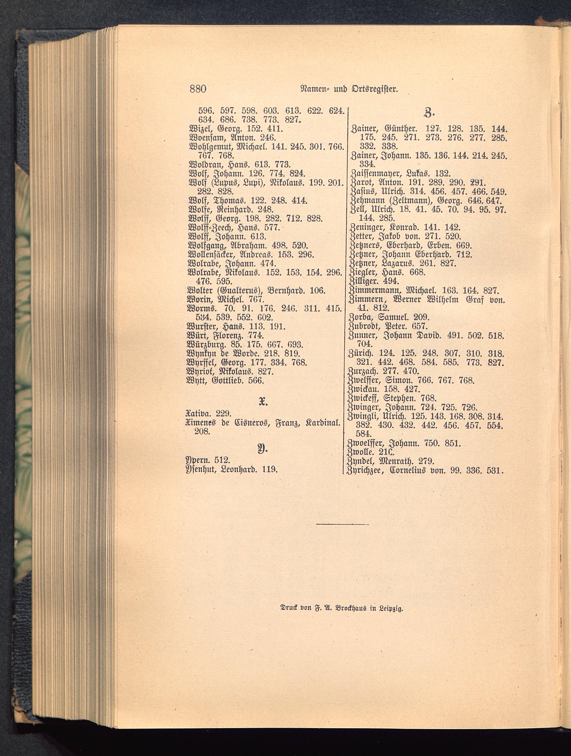 321. 442. 468. 584. 585. 773. L27.Zurzach. 277. 470.Zwelffer, Simon. 766. 767. 768.Zwickau . 158. 427.Zwickeff, Stephen. 763.Zwinger, Johann. 724. 725. 726.Zwingli, Ulrich. 125. 143. 168. 308. 314.