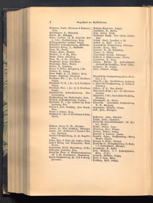 Dctlofs, Adolf, Frankfurt a. M.Detloff. C.. Basel . (2 Er.)Dcuerlich'sche Buchhandlung, Göttingen .Deuticke, Franz, Wien .Devrient, A., St. Petersburg .Diemcr, I., Mainz .Dieterichsche Sortbh., Göttingen .Dobberke ^ Schleiermacher, Berlin .Dominicus, H., Prag .Döring, Eduard, kgl. Hosbuchhäudler(Horvath'sche Buchhdlg.), Potsd. (2 Ex.).Druguliu, W., Leipzig .Dürr, AlphonS, Leipzig .