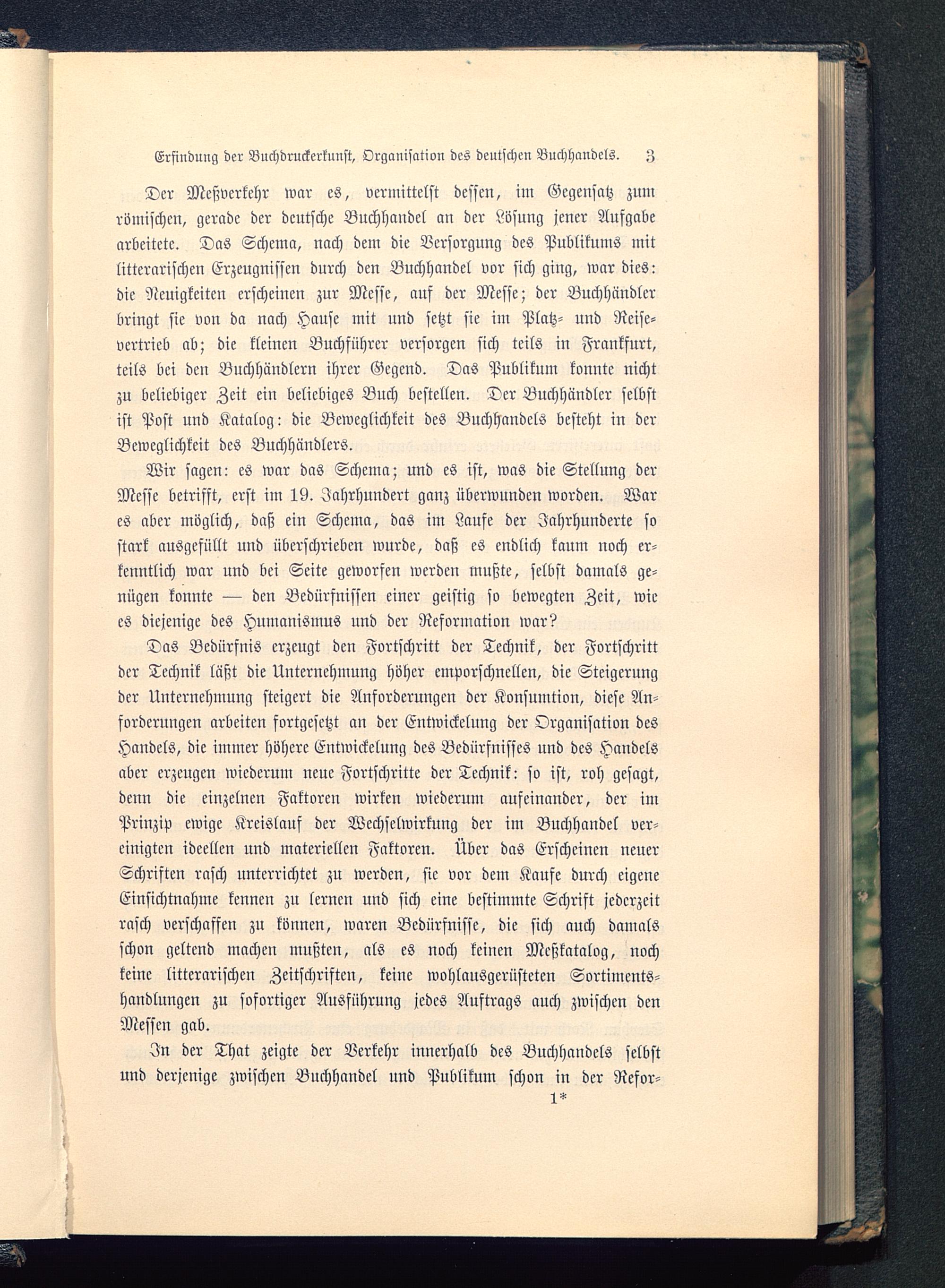 Das Bedürfnis erzeugt den Fortschritt der Technik, der Fortschrittder Technik läßt die Unternehmung höher emporschnellen, die Steigerungder Unternehmung steigert die Anforderungen der Konsumtion, diese An-forderungen arbeiten fortgesetzt an der EntWickelung der Organisation desHandels, die immer höhere Entwickelung des Bedürfnisfes und des Handelsaber erzeugen wiederum neue Fortschritte der Technik: so ist, roh gesagt,denn die einzelnen Faktoren wirken wiederum aufeinander, der imPrinzip ewige Kreislauf der Wechselwirkung der im Buchhandel ver-einigten ideellen und materiellen Faktoren. Über das Erscheinen neuerSchriften rasch unterrichtet zu werden, sie vor dem Kaufe durch eigeneEinsichtnahme kennen zu lernen und sich eine bestimmte Schrift jederzeitrasch verschaffen zu können, waren Bedürfnisse, die sich auch damalsschon geltend machen mußten, als es noch keinen Mcßkatalog, nochkeine litterarischen Zeitschriften, keine wohlausgerüsteten Sortiments-handlungen zu sofortiger Ausführung jedes Auftrags auch zwischen denMessen gab.
