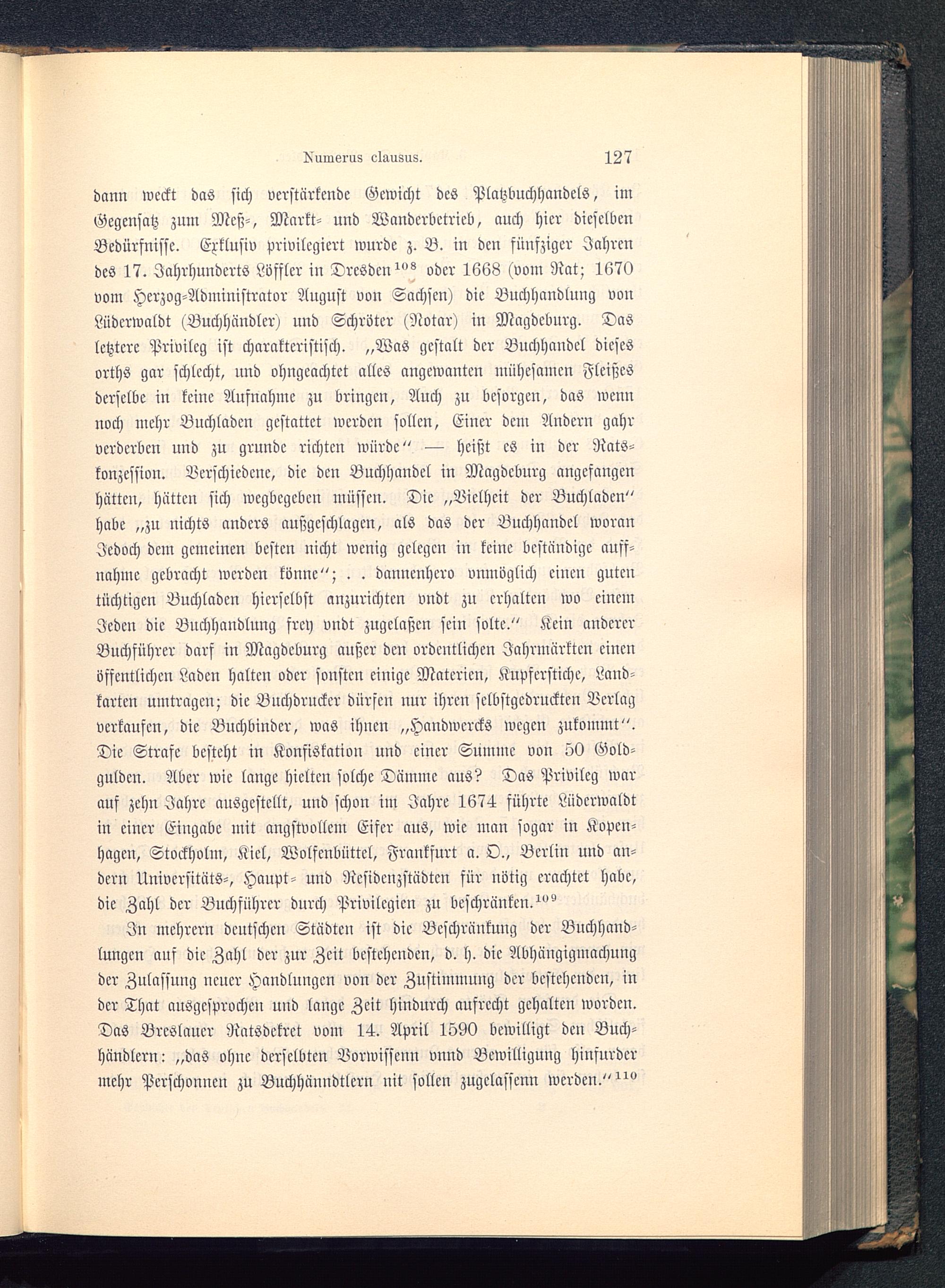 In mehrern deutschen Städten ist die Beschränkung der Buchhand-lungen auf die Zahl der zur Zeit bestehenden, d. h. die Abhüngigmachungder Zulassung neuer Handlungen von der Zustimmung der bestehenden, inder That ausgesprochen und lange Zeit hindurch aufrecht gehalten worden.Das Brcslaucr Ratsdekret vom 14. April 1590 bewilligt den Buch-händlern: „das ohne derselbten Vorlvisscun vnnd Bewilligung hinfurdcrmehr Pcrschonncn zu Buchhäundtlern uit sollen zugelassenn werden."""