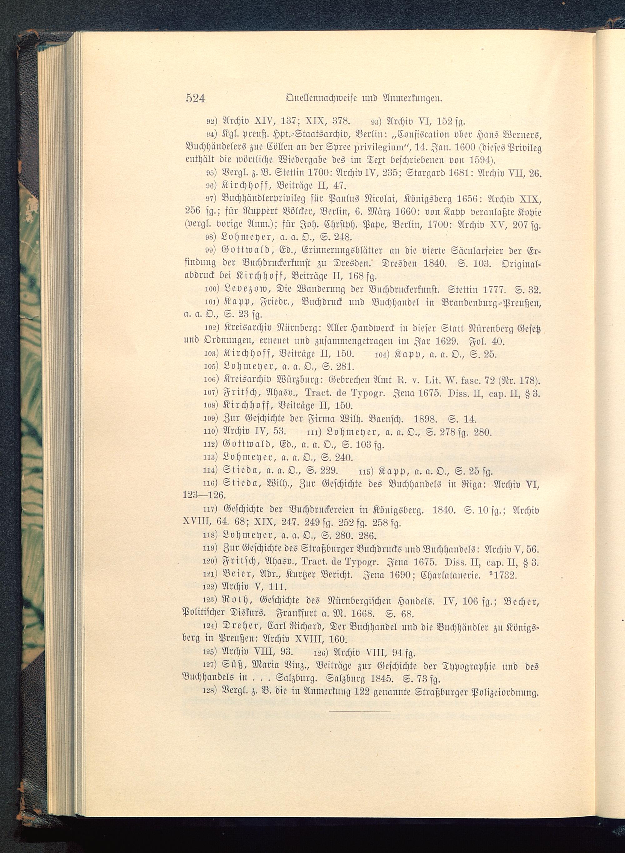 114) Stieda, a. a. O., S. 229. 115) Kapp, a. a. O., S. 25 fg.11«) Stieda, Wilh., Zur Geschichte des Buchhandels in Riga : Archiv VI,123—126.