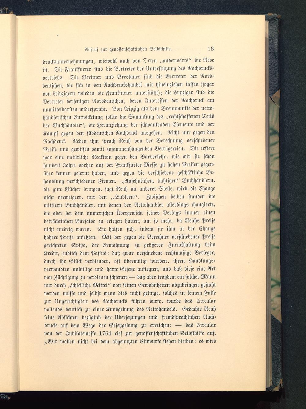 drucksuntcrnehmungm, wicwohl auch von ^rten „anderwärts" die Redeist. Die Frankfurter sind die Vertreter der Unterstützung des Nachdrucks-vcrtricbs. Die Berliner und BrcSlaucr sind die Vertreter der Nord-deutschen, die sich in den Nachdruckshandel mit hineinziehen lassen (sogarvon Leipzigern würden die Frankfurter unterstützt); die Leipziger sind dieVertreter derjenigen Norddeutschen, deren Interessen der Nachdruck amunmittelbarsten widerspricht. Von Leipzig als dem Brennpunkte der nctto-hnndlcrischcn Entwickclnng sollte die Scnumluug des „rechtschaffenen Teilsder Buchhändler", die Heranziehung der schwankenden Elemente und derKampf gegen den süddeutschen Nachdruck ausgehen. Nicht nur gegen denNachdruck. Neben ihm sprach Reich von der Berechnung verschiedenerPreise und gewissen damit zusammenhängenden Betrügereien. Die ersterewar eine natürliche Reaktion gegen den Barverkehr, wie wir sie schonhundert Jahre vorher auf der Frankfurter Messe zu hohen Preisen gegen-über kennen gelernt haben, und gegen die verschiedene geschäftliche Be-handlung verschiedener Firmen. „Ansehnlichen, tüchtigen" Buchhändlern,die gute Bücher bringen, sagt Reich an anderer Stelle, wird die Chcmgcnicht verweigert, nur den „Sndleru". Zwischen beiden standen dieMittlern Buchhändler, mit denen der Nettohändler allerdings changierte,die aber bei dem numerischen Übergewicht seines Verlags immer einenbeträchtlichen Barsaldo zu erlegen hatten, um so mehr, da Reichs Preisenicht niedrig waren. Sic halfen sich, indem sie ihm in der Changehöhere Preise ansetzten. Mit der gegen die Berechner verschiedener Preisegerichteten Spitze, der Ermahnung zu größerer Zurückhaltung beimKredit, endlich dem Passus: daß zwar verschiedene rechtmäßige Verleger,durch ihr Glück verblendet, oft übermütig würden, ihren Handlungs-vcrwandten unbillige und harte Gesetze auflegten, und daß diese eine Artvon Züchtigung zu verdienen schienen — daß aber trotzdem ein solcher Mannnur durch „schickliche Mittel" von seinen Gewohnheiten abzubringen gesuchtwerden müsse und selbst wenn dies nicht gelinge, solches in keinem Fallezur Ungerechtigkeit des Nachdrucks führen dürfe, wurde das Circularvollends deutlich zu einer Kundgebung des Ncttohandels. Gedachte Reichseilte Absichten bezüglich der Übersetzungen und fremdsprachlichen Nach-drucke auf dem Wege der Gesetzgebung zu erreichen: — das Circularvon der Jubilatemesse 1764 rief zur genossenschaftlichen Selbsthilfe auf.„Wir wollen nicht bei dem abgenutzten Einwurfe steheu bleiben: es wird