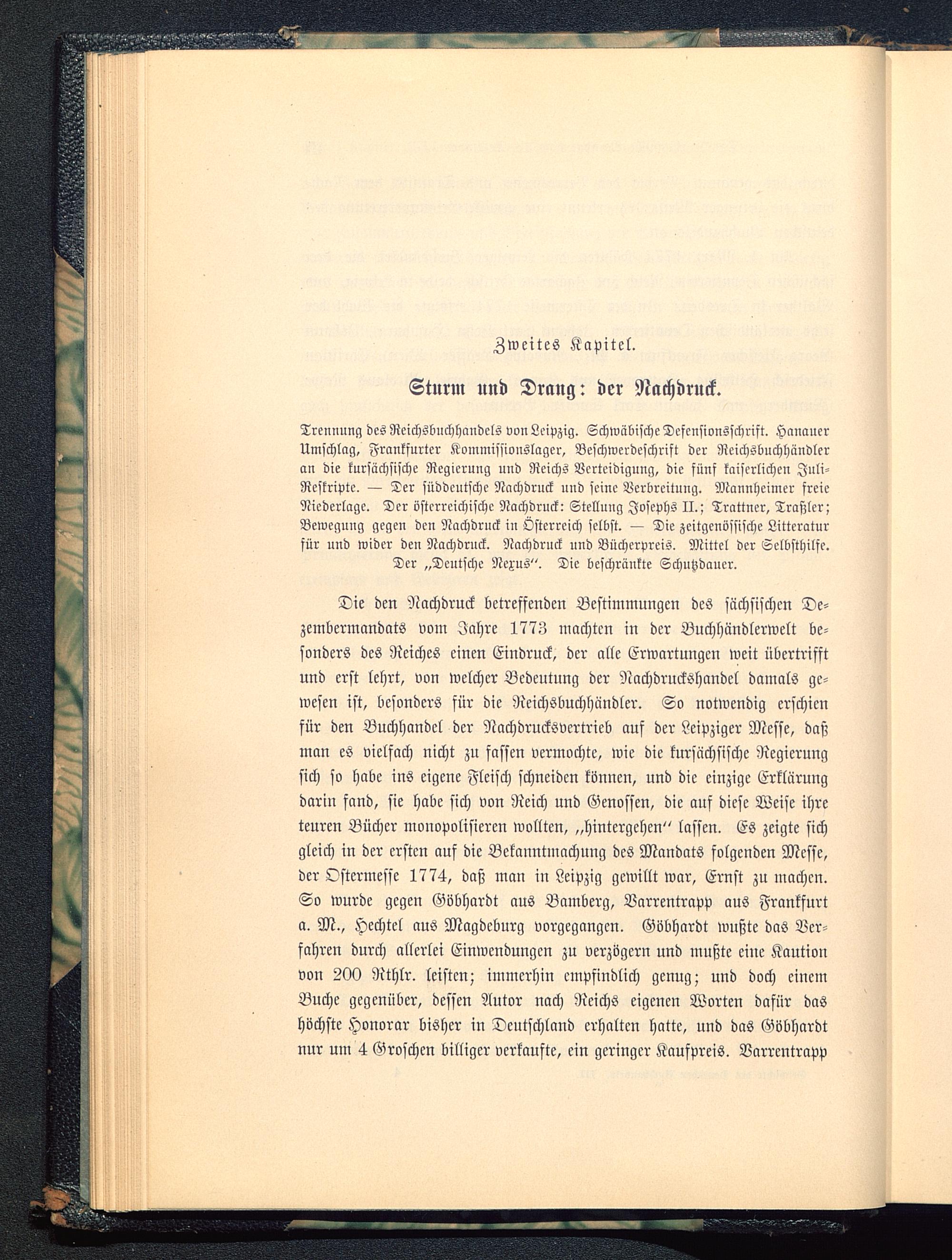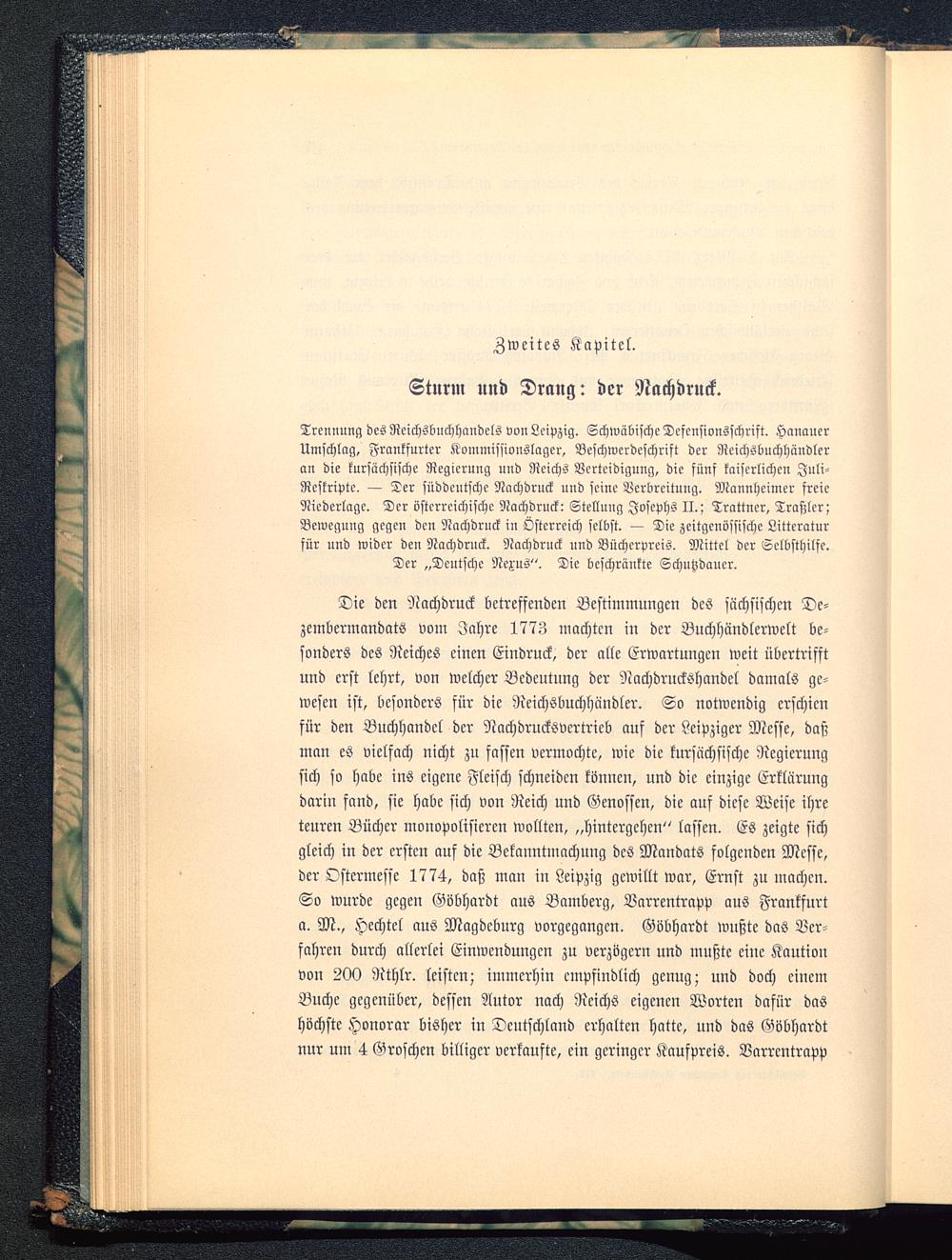 Trennung desReichsbnchhandels von Leipzig. Schwäbische Dcfcnsionsschrift. Hanauer Umschlag, Frankfurter Kommissionslager, Bcschwerdeschrift der Rcichslinchhündleran die kursächsische Regierung und Reichs Verteidigung, die fünf kaiserlichen Juli-Reskriptc. — Der süddeutsche Nachdruck und seine Verbreitung. Mannheimer freieNiederlage. Der österreichische Nachdruck: Stellung Josephs II. ; Trattner, Traßler;Bewegung gegen den Nachdruck in Österreich selbst. — Die zeitgenössische Littcraturfür und wider den Nachdruck. Nachdruck und Wucherpreis. Mittel der Selbsthilfe.Der „Deutsche Nexus". Die beschränkte Schutzdancr.
