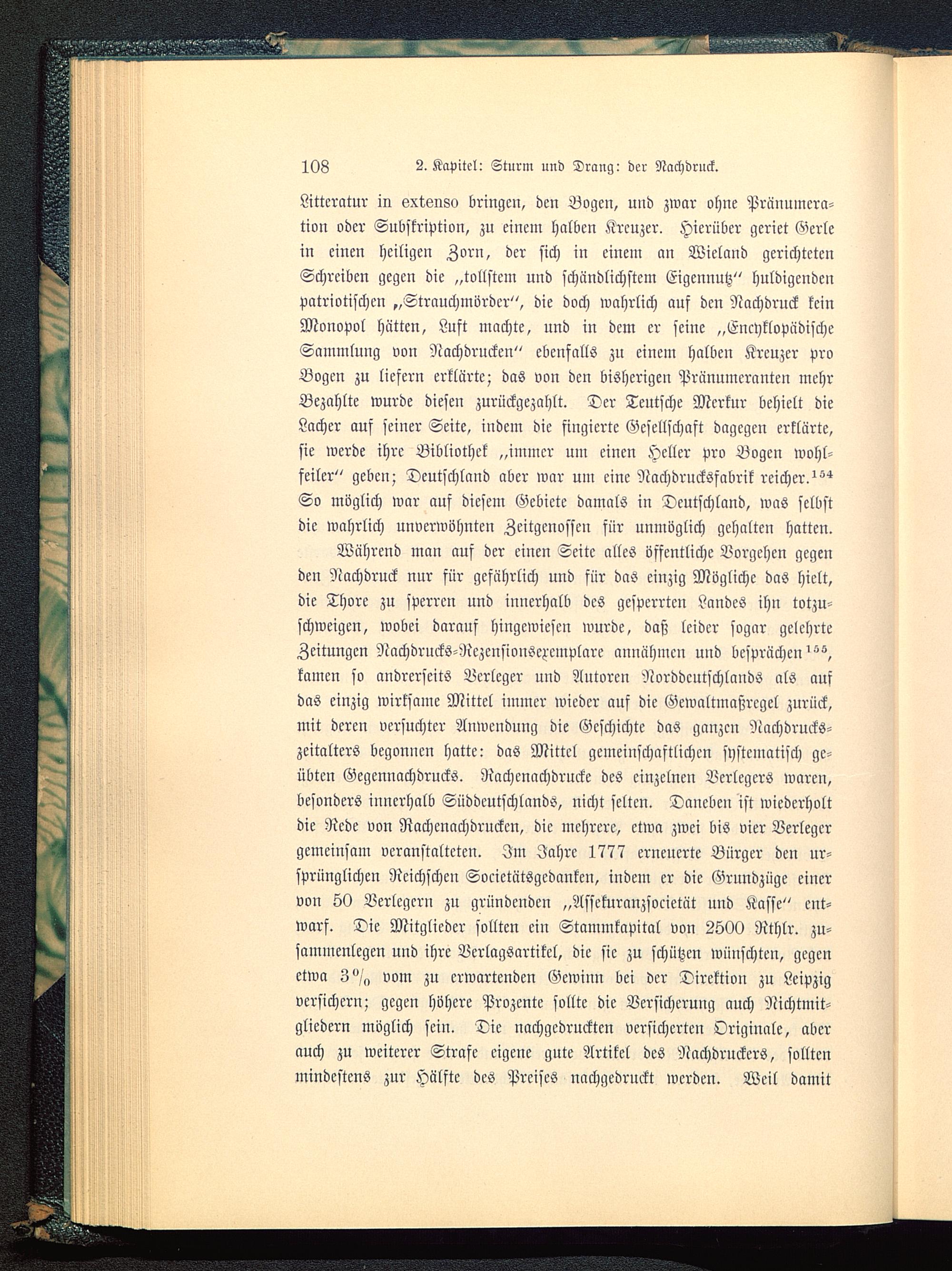 Während man auf der einen Seite alles öffentliche Vorgehen gegenden Nachdruck nur für gefährlich und für das einzig Mögliche das hielt,die Thore zu sperren und innerhalb des gesperrten Landes ihn totzu-schweigen, wobei darauf hingewiesen wurde, daß leider sogar gelehrteZeitungen Nachdrucks-NezcusiouScxcmplare annähmen und besprächen''^,kamen so andrerseits Verleger und Autoreu Norddcutschlands als ausdas einzig wirksame Mittel immer wieder auf die Gewaltmaßregcl zurück,mit deren versuchter Anwendung die Geschichte das ganzen Nachdrucks-zeitalters begonnen hatte: das Mittel gemeinschaftlichen systematisch ge-übten Gegennachdrucks. Rachcnachdrucke des einzelnen Verlegers waren,besonders innerhalb Süddeutschlands , nicht selten. Daneben ist wiederholtdie Rede von Rachcnachdruckcn, die mehrere, etwa zwei bis vier Verlegergemeinsam veranstalteten. Im Jahre 1777 erneuerte Bürger den ur-sprünglichen Ncichschcn Socictätsgedanken, indem er die Grundzüge einervon 50 Verlegern zu gründenden „Assekuranzsocietät und Kasse" ent-warf. Die Mitglieder sollten ein Stammkapital von 2S00 Rthlr. zu-sammenlegen und ihre Verlagsartikel, die sie zu schützen wünschten, gegenetwa 3 " „ vom zu crwarteudeu Gewinn bei der Direktion zu Leipzig versichern; gegen höhere Prozente sollte die Versicherung auch Nichtmit-gliedern möglich sein. Die nachgedruckten versicherten Originale, aberauch zu weiterer Strafe eigene gute Artikel des Nachdruckcrs, solltenmindestens zur Hälfte des Preises nachgedruckt werden. Weil damit