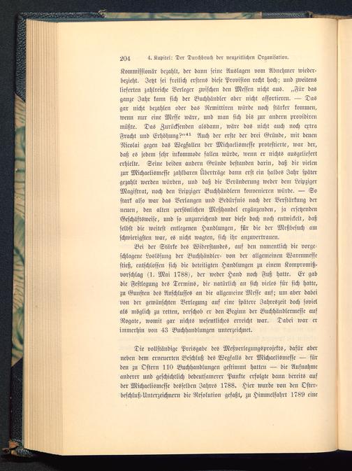 Die vollständige Preisgabe des Meßvcrlcgungsprojcktö, dafür aberneben dem erneuerten Beschluß des Wegfalls der Michaelismesse — fürden zu Ostern 110 Buchhandlungen gestimmt hatten — die Aufnahmeanderer und geschichtlich bedeutsamerer Punkte erfolgte dann bereits aufder Michaclismesse desselben Jahres 1788. Hier wurde von den Oster-beschluß-Untcrzeichnern die Resolution gefaßt, zu Himmelfahrt 1789 eine