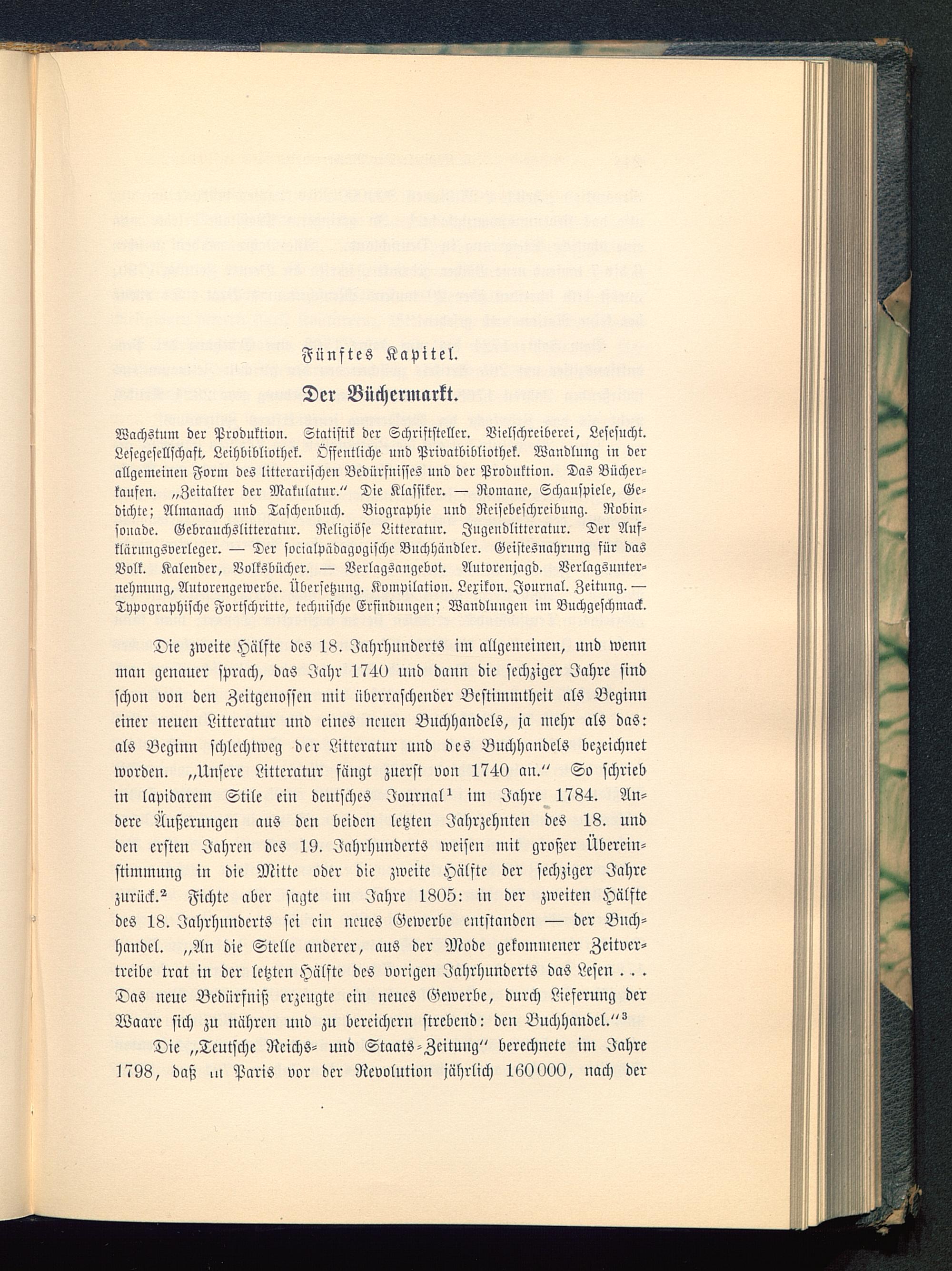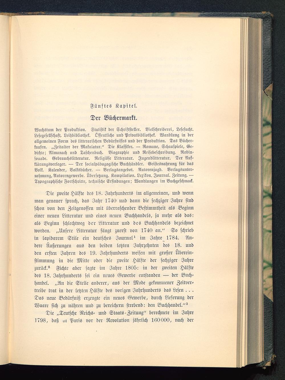 Wachstum der Produktion. Statistik dcr Schriftsteller. Vielschreiberci, Lesesucht.Lesegesellschaft, Leihbibliothek, öffentliche uud Privatbibliothek. Wandlung in dcrallgemeinen Form des littcrarifchen Bedürfnisses uud der Produktion. Das Büchcr-kcmfcn. „Zeitalter der Makulatur." Die Klassiker. — Romaue, Schauspiele, Ge-dichte; Nlmauach uud Taschenbuch. Biographie und Nciscbeschrcibung. Robin-souade. Gebrauchslitteratur. Religiöse Littcratur. Jugeudlittcratur. Der Auf-kläruugsverlegcr. — Dcr socialpädagogischc Buchhändler. Gcistesnahrung für dasVolk. Kalender, Volksbücher. — Vcrlagsaugebot. Antorenjagd. VerlagSnnter-nehmung, Antorcngcwerbe. Übersetzung. Kompilation. Lexikon. Journal. Zeitung. —Typographische Fortschritte, technische Erfinduugen: Wandlungen im Bnchgcschmack.