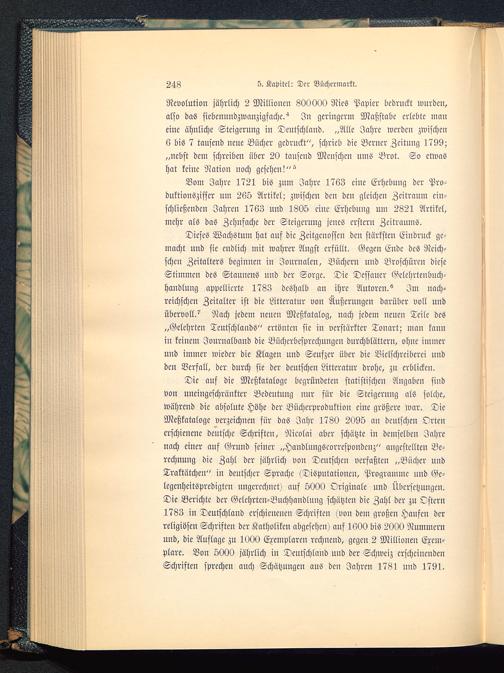Revolution jährlich 3 Millionen 800000 Nies Papier bedruckt wurden,also das siebcnundzwanzigfache.^ In geringerm Maßstäbe erlebte maneine ähnliche Steigerung in Deutschland . „Alle Jahre werdcu zwischen6 bis 7 tausend neue Bücher gedruckt", schrieb die Berner Zeitung 1799;„nebst dem schreiben über 20 tausend Menschen ums Brot. So etwashat keine Nation noch gesehen! "^