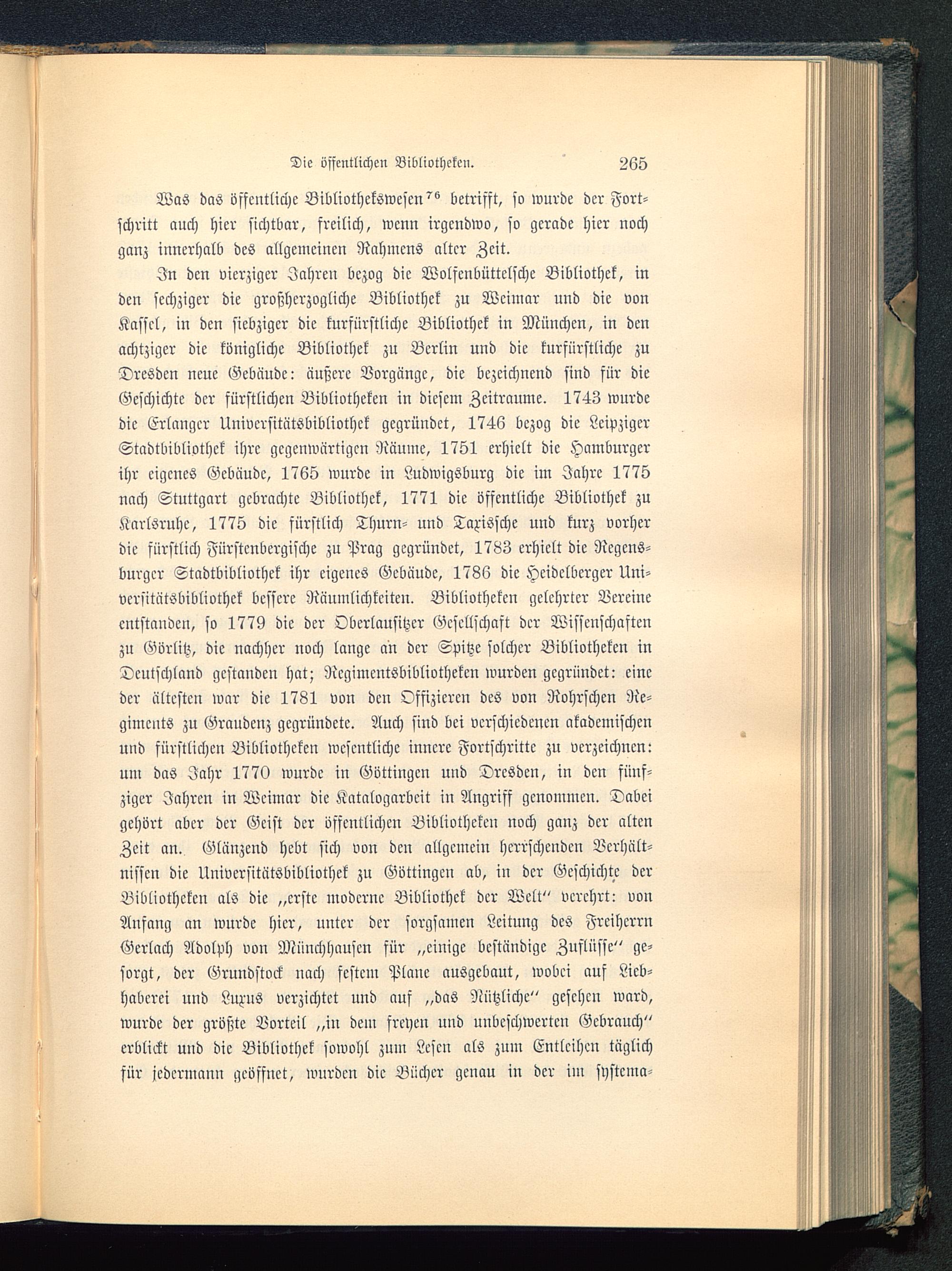 Was das öffentliche Bibliothekswesen'° betrifft, so wurde der Fort-schritt auch hier sichtbar, freilich, wenn irgendwo, so gerade hier nochganz innerhalb des allgemeinen Rahmens alter Zeit.