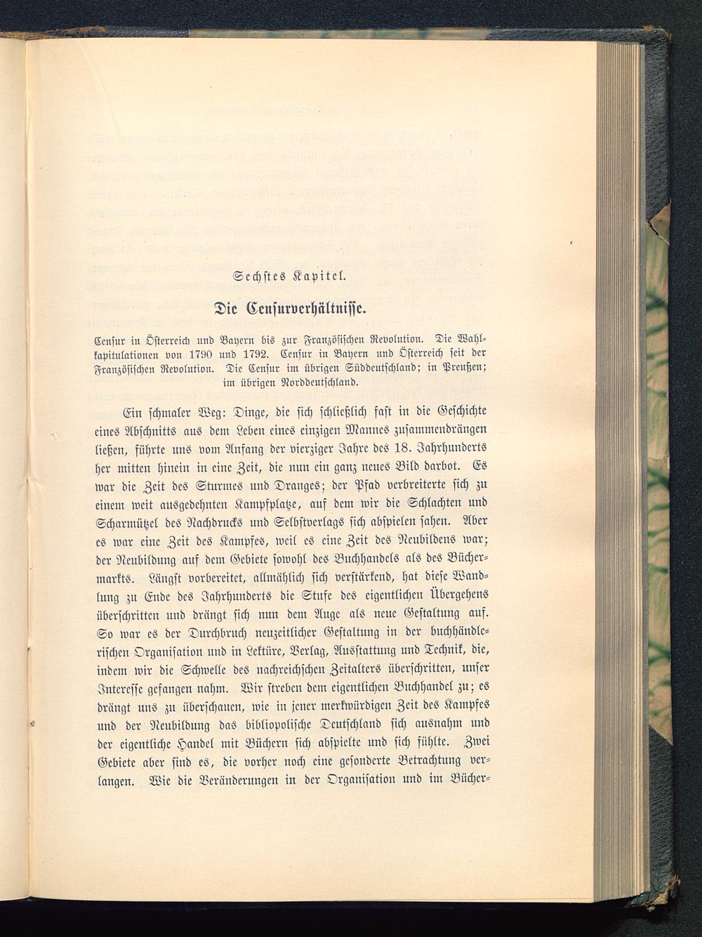Ein schmaler Weg: Dinge, die sich schließlich fast in die Geschichteeines Abschnitts aus dem Leben eines einzigen Mannes zusammendrängenließen, führte uns vom Anfang der vierziger Jahre des 18. Jahrhundertsher mitten hinein in eine Zeit, die nun ein ganz neues Bild darbot. Eswar die Zeit des Sturmes und Dranges; der Pfad verbreiterte sich zueinem weit ausgedehnten Kampfplatze, auf dem wir die Schlachten undScharmützel des Nachdrucks und Selbstverlags sich abspielen saheu. Aberes war eine Zeit des Kampfes, weil es eine Zeit des Ncubildens war;der Neubildung auf dem Gebiete sowohl des Buchhandels als des Bücher-markts. Längst vorbereitet, allmählich sich verstärkend, hat diese Wand-lung zu Ende des Jahrhunderts die Stufe des eigentlichen Übcrgehcnsüberschritten und drängt sich nun dem Auge als neue Gestaltung auf.So war es der Durchbruch neuzeitlicher Gestaltung in der buchhündlc-rischcn Organisation und in Lektüre, Verlag, Ausstattung uud Technik, die,indem wir die Schwelle des nachrcichschcn Zeitalters überschritten, unserInteresse gefangen nahm. Wir streben dem eigentliche:? Buchhandel zu; esdrängt uns zu überschauen, wie iu jener merkwürdigen Zeit des Kampfesund der Neubildung das bibliopolischc Deutschland sich ausnahm undder eigentliche Handel mit Büchern sich abspielte und sich fühlte. ZweiGebiete aber sind es, die vorher noch eine gesonderte Betrachtung ver-langen. Wie die Veränderungen in der Organisation und im Bücher-