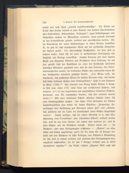 Praxis war noch ihnen „ziemlich inguisitiousmäßig". Die Strafe aufDruck ohne Ccnsur bestand in einer Summe von hundert Speciesdukatcnoder Gassenkehrer-, Bühncnstchcn, Gefängnis^; sogar Ankündigungen undNachrichten mußten im Manuskript censuriert, dann gedruckt abermalsan den Censursekretär gesandt, revidiert und unterschrieben werden. Wodie Anwendung der neueu Bestimmungen in diesen Briefen bemerkbarist, da geht sie recht bezeichnender Weise auf das persönliche Eingreifendes Kaisers zurück. Der österreichische Buchhändler, der seine Zeit zunehmen wußte, stand sich bei einer so merkwürdigen Vereinigung vonNachsicht und Strenge vortrefflich. Josephs Toleranz gab einer eigenenKlasse von fliegenden Blättern und Broschüren ihren Ursprung, die aufjene gewisse Lust des Publikums an einer ins Persönliche spielendenpolitischen Pikantcric gegründet war, und die man Toleranz- oder Ncfor-mationsschriften nannte; die verbotenen Bücher aber andrerseits waren fürden Buchhändler besonders geschätzte Artikel. „Der Mann weiß, alsKaufmann, daß geschwärzte Waare die meisten Proccnte trägt, und darumsind solche verbotene Sachen seine LicblingSkinder," heißt es von Wuchererin Wien (1798).^ Ein Circular von Georg Kopfs Wittwe 6 Comp,in Pest vom Jahre 1787 erbat Nova aus verschiedenen Fächern, unddarunter „6 s, 12 von ungereimten und ausgelassenen verbotenen Büchern,überhaupt, was Sie muthmaßen könnten, daß hier verboten werdendürfte".^ Mit einer verbotenen Schrift aktuellen Inhalts ließen sicheben Bombengeschäfte machen. Im Jahre 1786 übersandte die Wiener Ecnsurkommission dem Kaiser die beiden Schriften: „Frcymütige Be-merkungen über Aufklärung und Reformen unsrer Zeit" und „Beweis,daß Zahlhcim als ein Opfer der Unwissenheit seiner Nichter hingerichtetworden". Joseph verfiigte, daß die erstcre öffentlich (d. h. ohne Ein-schränkung einer?6i'inittit,ur- oder ^.äniittit-ur-Schrift) verkauft werdensolle, weil sie nur seine Person, die letztere aber verboten sei, weil sieseine Richter und ihr Verfahren betreffe. Sofort wurde der — beiWucherer, aber ohne Verlagsangabe erschienene — „Beweis" an allenEcken und Enden angekündigt, zuerst für 30, dann für 15 Kreuzer ver-kauft und von Wucherer in sechs Auflagen, von Schmidt ^ Stcinsberg,die ihn, weil er erstens verboten und zweitens ohne Verlagsangabe war,ungestraft nachdruckten, für 10 und 7 Kreuzer, verkauft und in 4000Exemplaren abgesetzt.^ Im Reiche erschien „Figaros Reise nach und