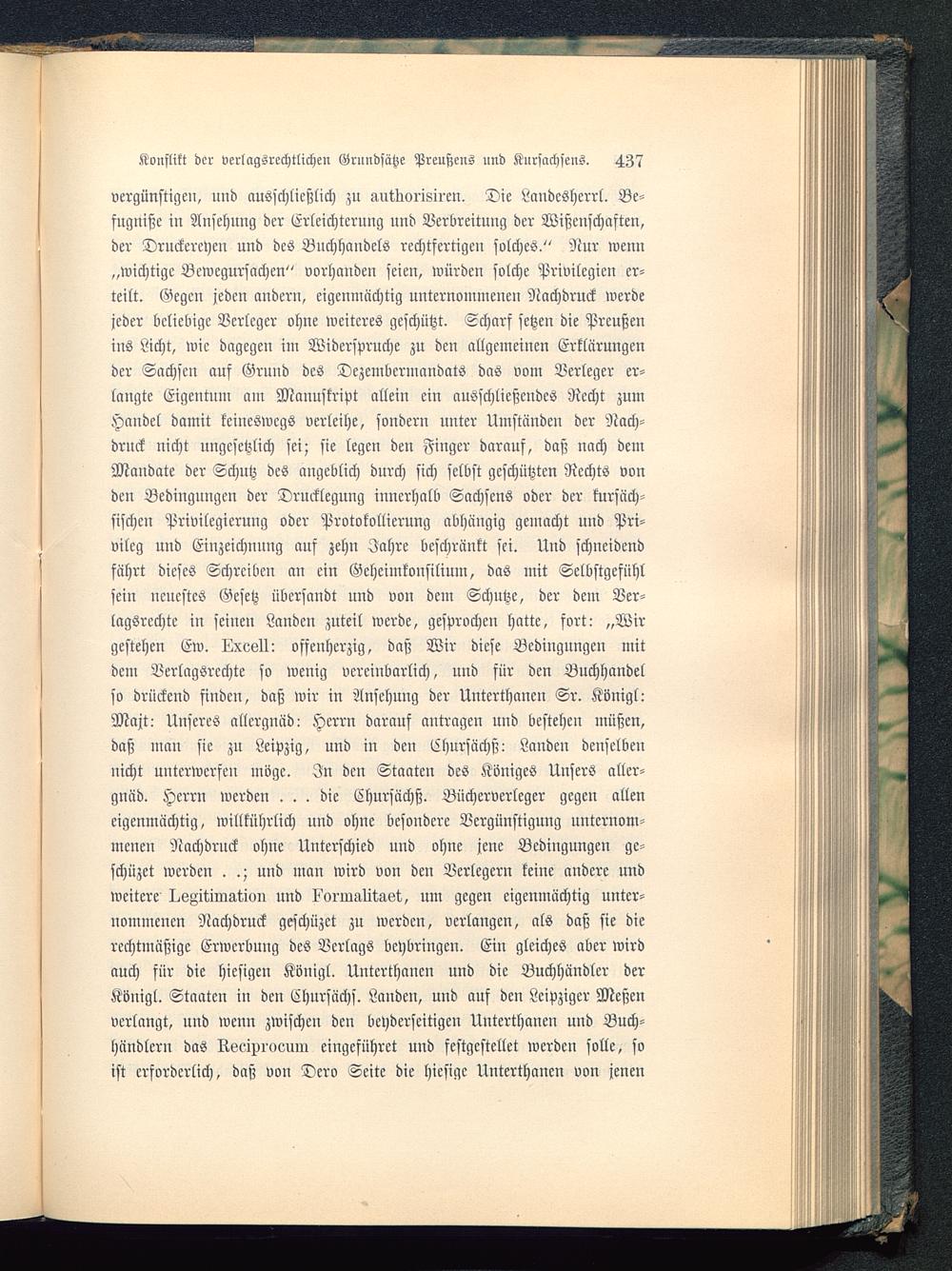 Konflikt der verlagsrcchtlichen Grundsätze Preußens und Knrsachsens. 437