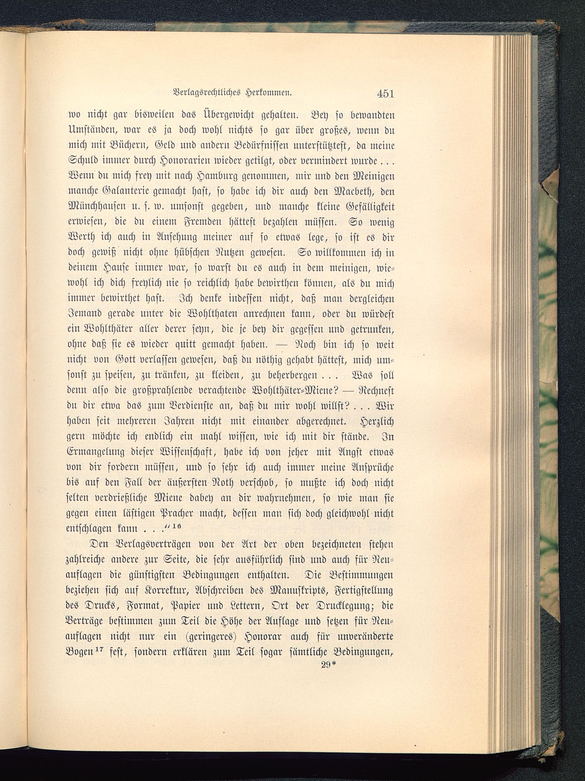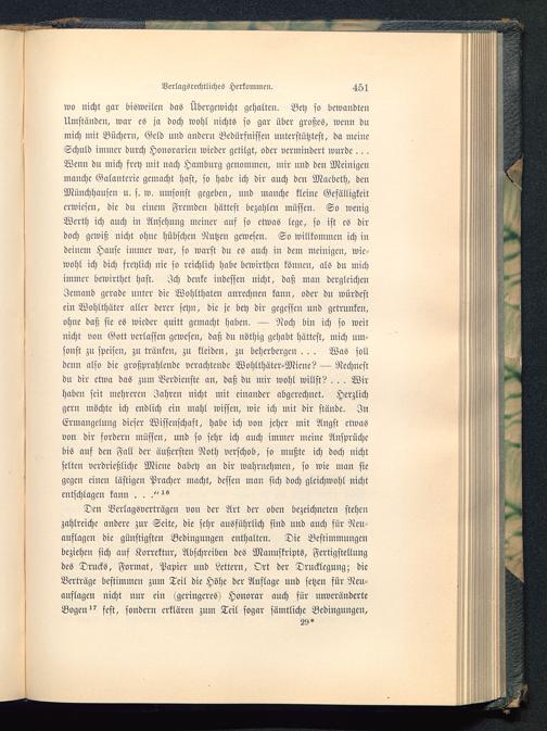 Den Verlagsverträgcn von der Art der oben bezeichneten stehenzahlreiche andere zur Seite, die sehr ausführlich sind und auch für Neu-auflagen die günstigsten Bedingungen enthalten. Die Bestimmungenbeziehen sich auf Korrektur, Abschreiben des Manuskripts, Fertigstellungdes Drucks, Format, Papier uud Lettern, Ort der Drucklegung; dieVerträge bestimmen zum Teil die Höhe der Auflage und setzen für Neu-auflagen nicht nur ein (geringeres) Honorar mich für unveränderte
