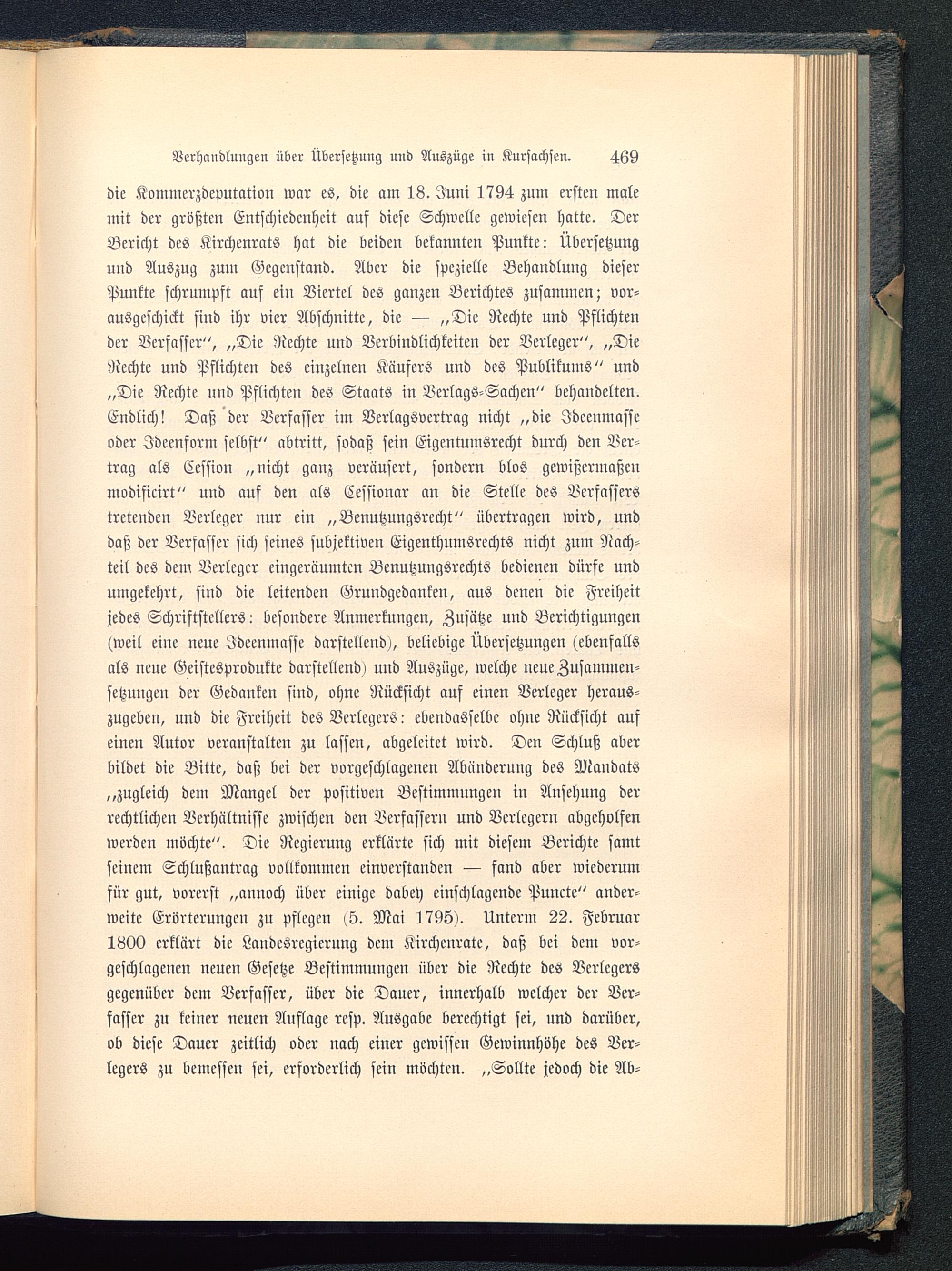 Verhandlungen über Übersetzung und Auszüge in Kursachsen. 469