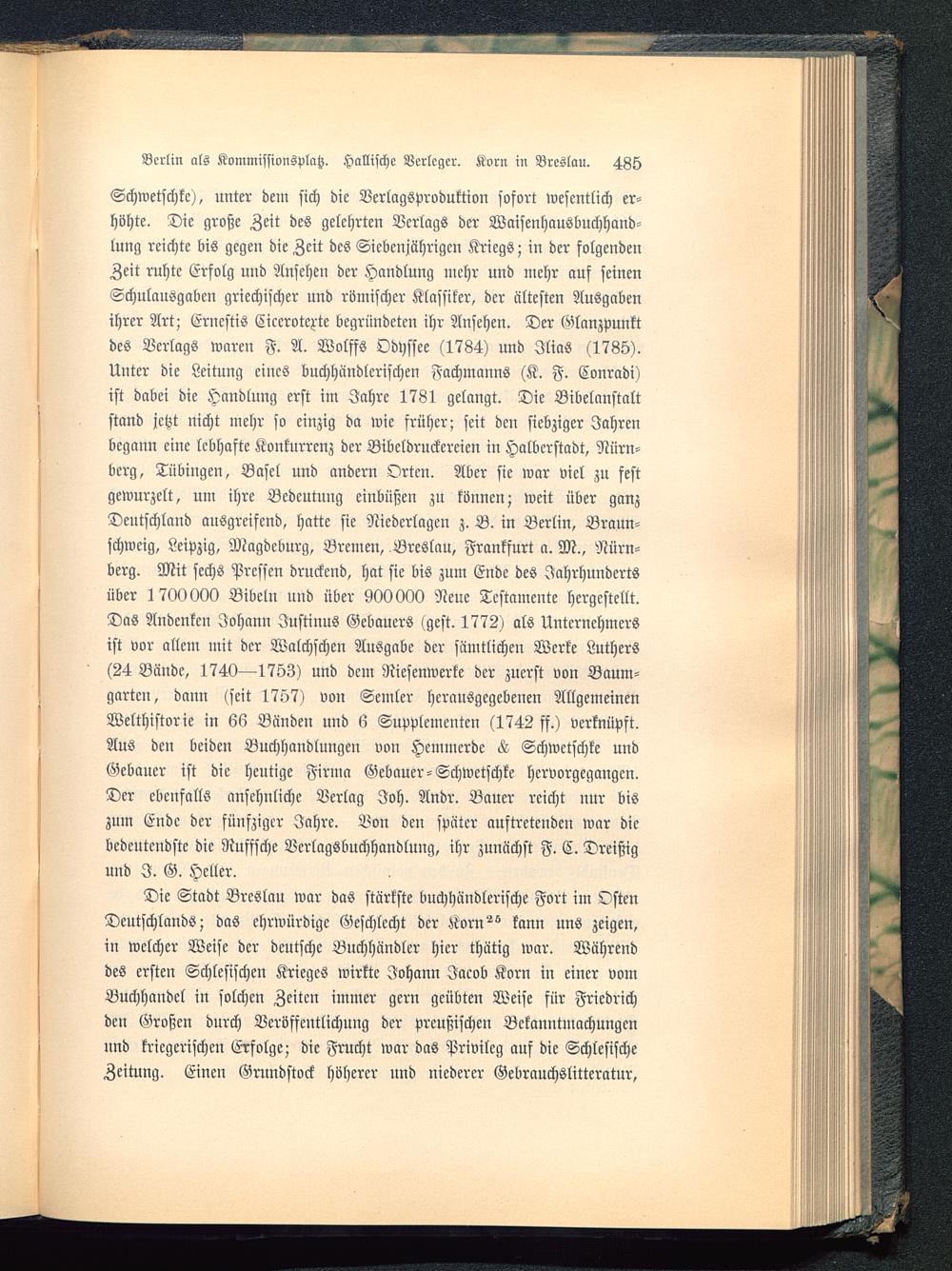 Berlin als Kommissionsplatz. Hallische Verleger. Korn in Breslau . 485