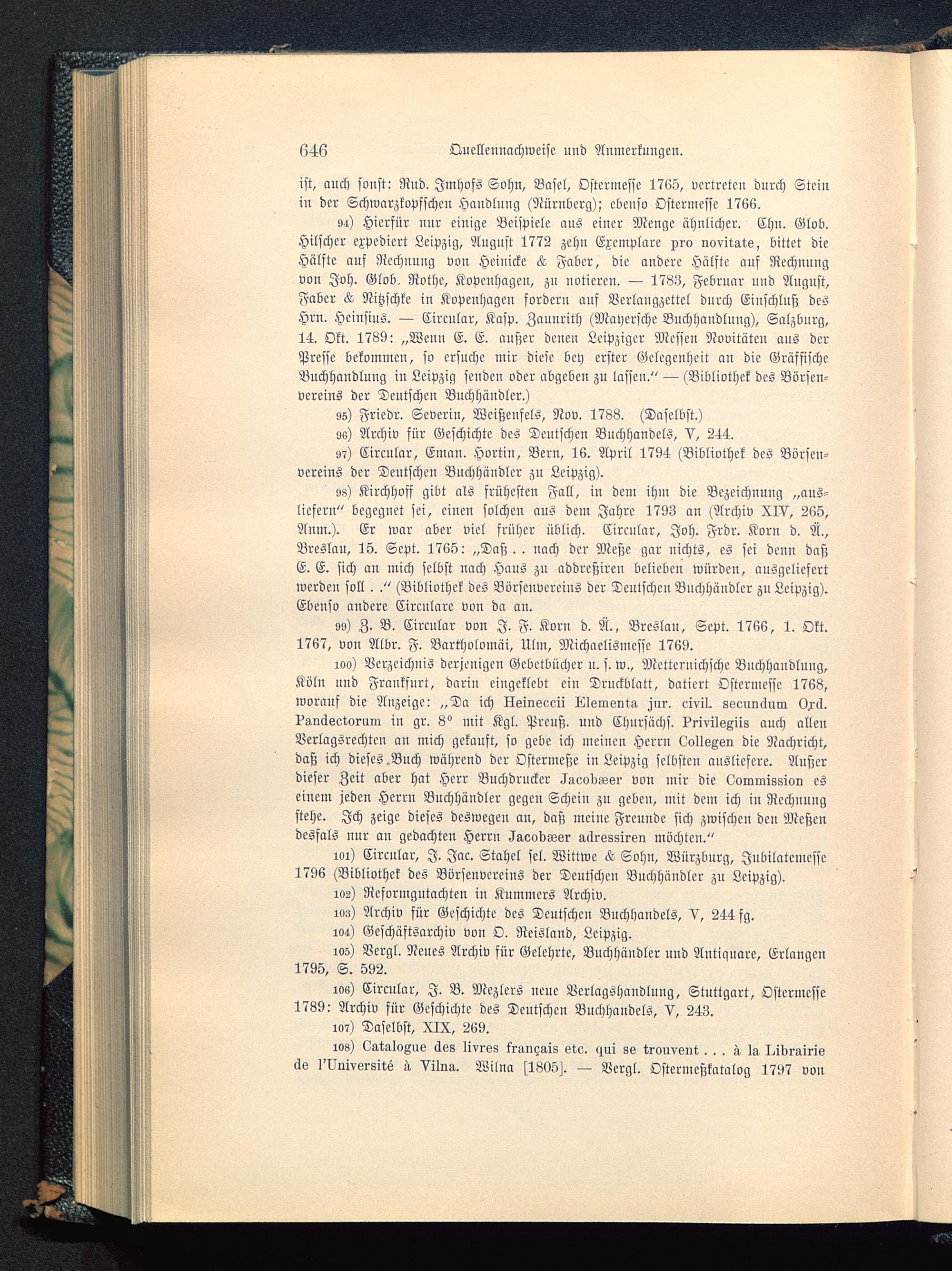 gs) Kirchhoff gibt als frühesten Fall, in dem ihm die Bezeichnung „aus-liefern" begegnet sei, einen solchen aus dem Jahre 1793 an (Archiv XIV, 265,Anm.). Er war aber viel früher üblich. Circular, Joh. Frdr. Korn d. Ä.,Breslau , 15. Scpt. 1765: „Daß., nach der Meße gnr nichts, es sei denn daßE. E. sich an mich selbst nach Haus zu addrcßireu belieben würden, ausgeliefertwerden soll. ." (Bibliothek des Bvrscnvercins der Deutschen Buchhüudler zu Leipzig ).Ebenso andere Circnlare von da an.