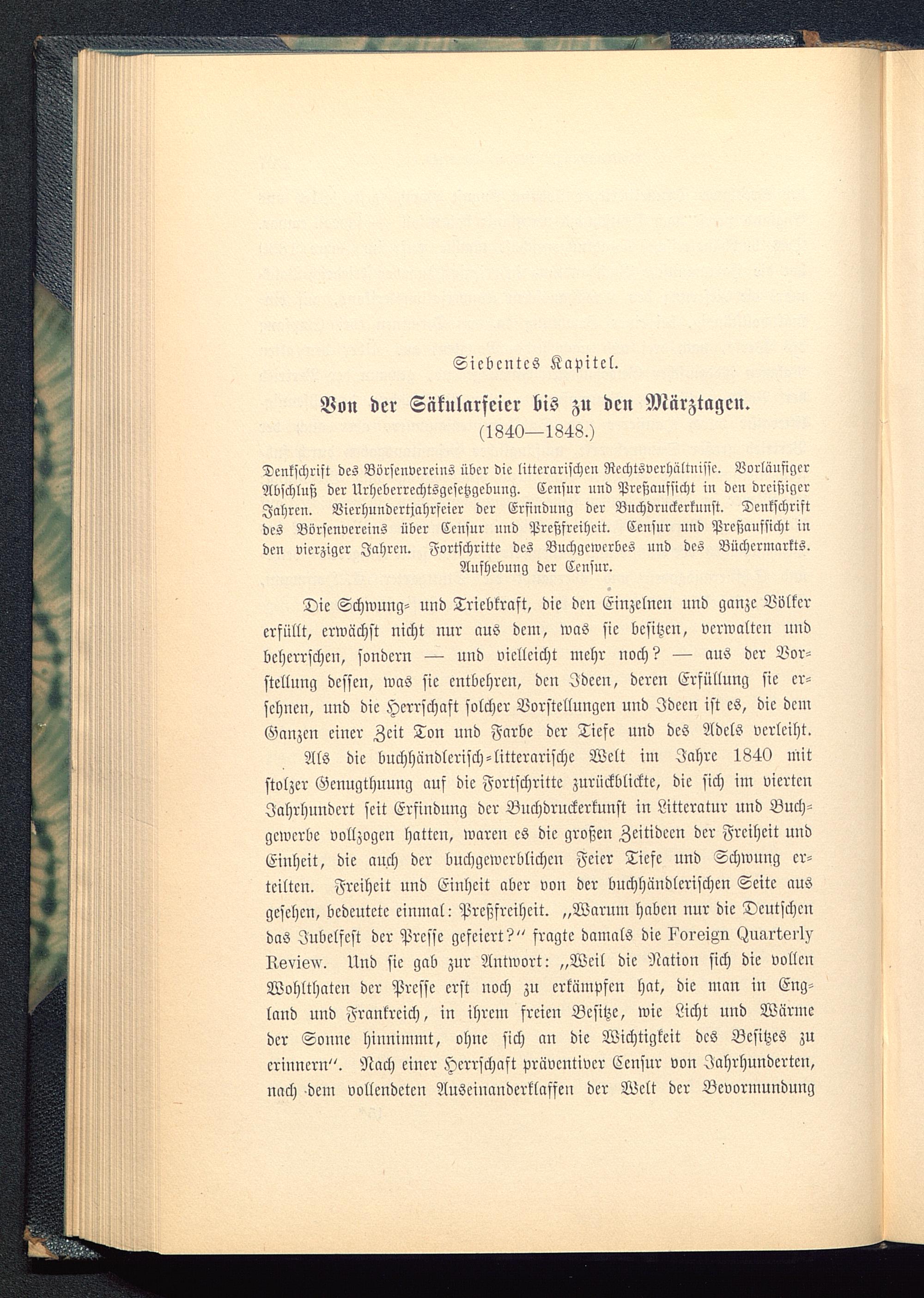 Denkschrift des Börscnvereins über die literarischen Rechtsverhältnisse. VorläufigerAbschluß der Urhcbcrrcchtsgesctzgebung. Censur und Preßaufsicht iu den dreißigerJahren. Vicrhundcrtjahrfcier der Erfindung der Buchdruckerkuust. Denkschriftdes Börscnvereins über Censur nnd Preßfreihcit. Censur und Preßaufsicht inden vierziger Jahren. Fortschritte des Buchgewerbes und des Büchermarkts.