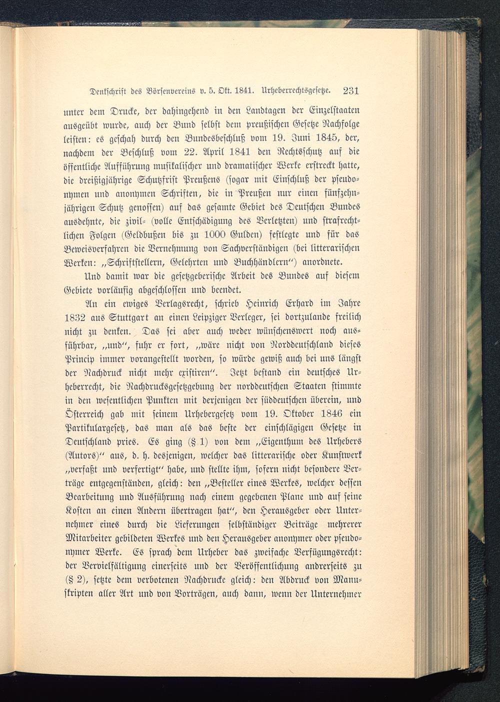 Denkschrift des Börsenvcrcins v. 5. Okt. 1841. Urheberrechtsgesetze. 231