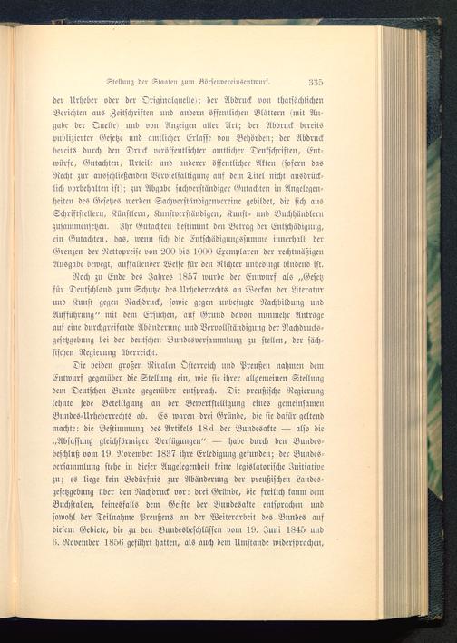 der Urheber oder der Originalquelle); der Abdruck von thatsächlichenBerichten aus Zeitschriften und andern öffentlichen Blattern (mit An-gabc der Quelle) und von Anzeigen aller Art; der Abdruck bereitspublizierter Gesetze und amtlicher Erlasse von Behörden; der Abdruckbereits durch den Druck veröffentlichter amtlicher Denkschriften, Ent-würfe, Gutachten, Urteile und anderer öffentlicher Akten (sofern dasRecht zur ausschließenden Vervielfältigung auf dem Titel nicht ausdrück-lich vorbehalten ist^; zur Abgabe sachverständiger Gutachten in Angelegen-heiten des Gesetzes werden Sachvcrständigcnvcreinc gebildet, die sich ausSchriftstellern, Künstlern, Kunstverständigen, Kunst- und Buchhändlernzusammensetzen. Ihr Gutachten bestimmt den Betrag der Entschädigung,ein Gutachten, das, wenn sich die Entschädigungssumme innerhalb derGrenzen der Nettopreise von 200 bis 1000 Exemplaren der rechtmäßigenAusgabe bewegt, auffallender Weise für den Richter unbedingt bindend ist.