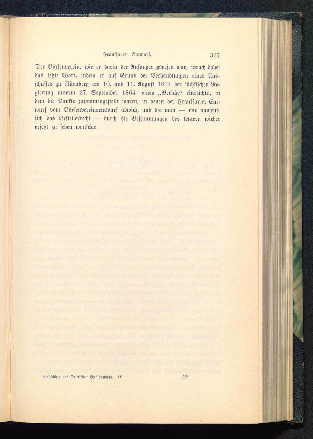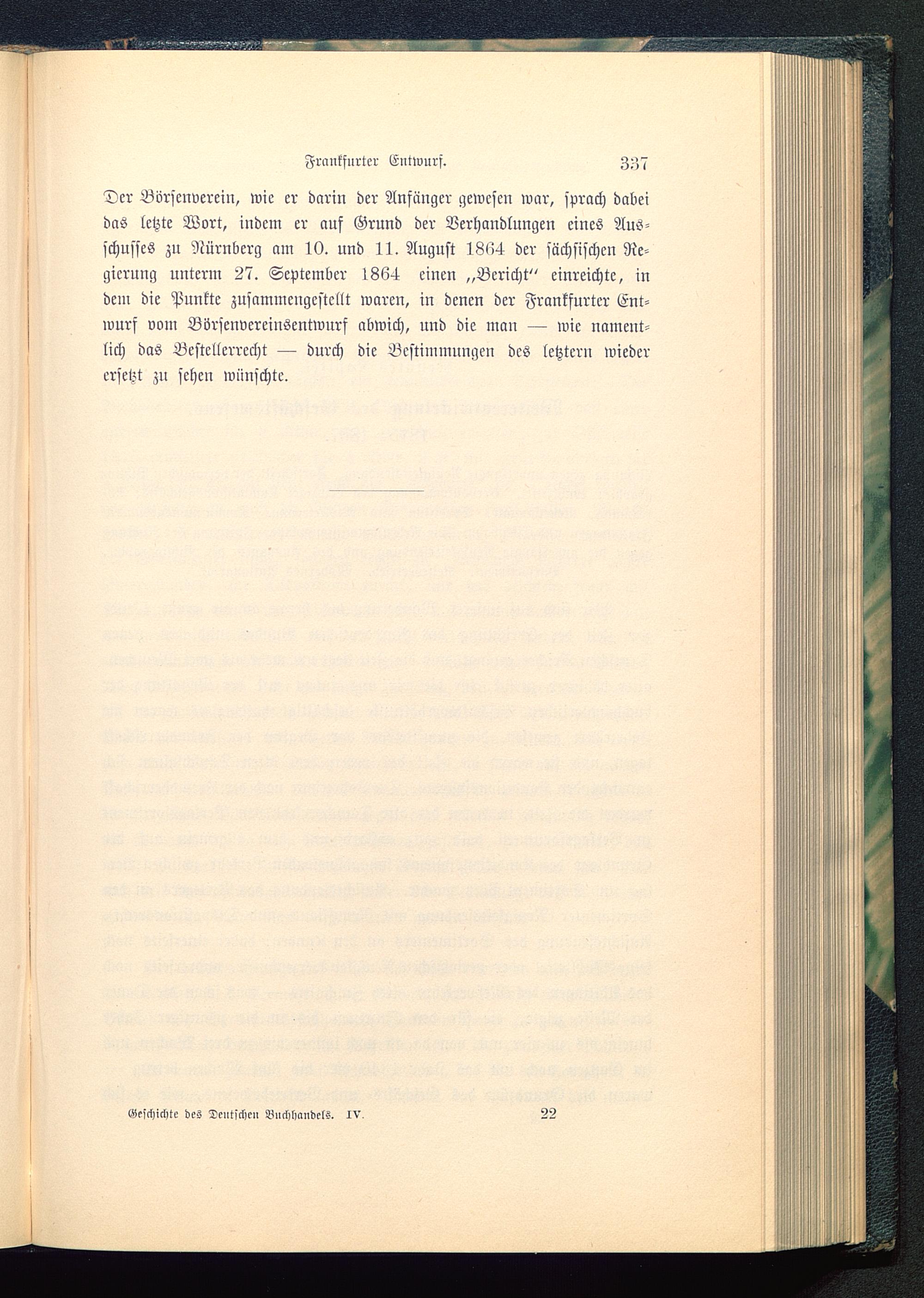 Der Börscnvercin, wie er darin der Anfänger gewesen war, sprach dabeidas letzte Wort, indem er auf Grund der Verhandlungen eines Aus-schusses zu Nürnberg am 10. und 11. August 1864 der sächsischen Re-gierung unterm 27. September 1864 einen „Bericht" einreichte, indem die Punkte zusammengestellt waren, in denen der Frankfurter Ent-wurf vom Börsenvereinsentwurf abwich, und die man — wie nament-lich das Bestcllcrrecht — durch die Bestimmungen des letztern wiederersetzt zn sehen wünschte.