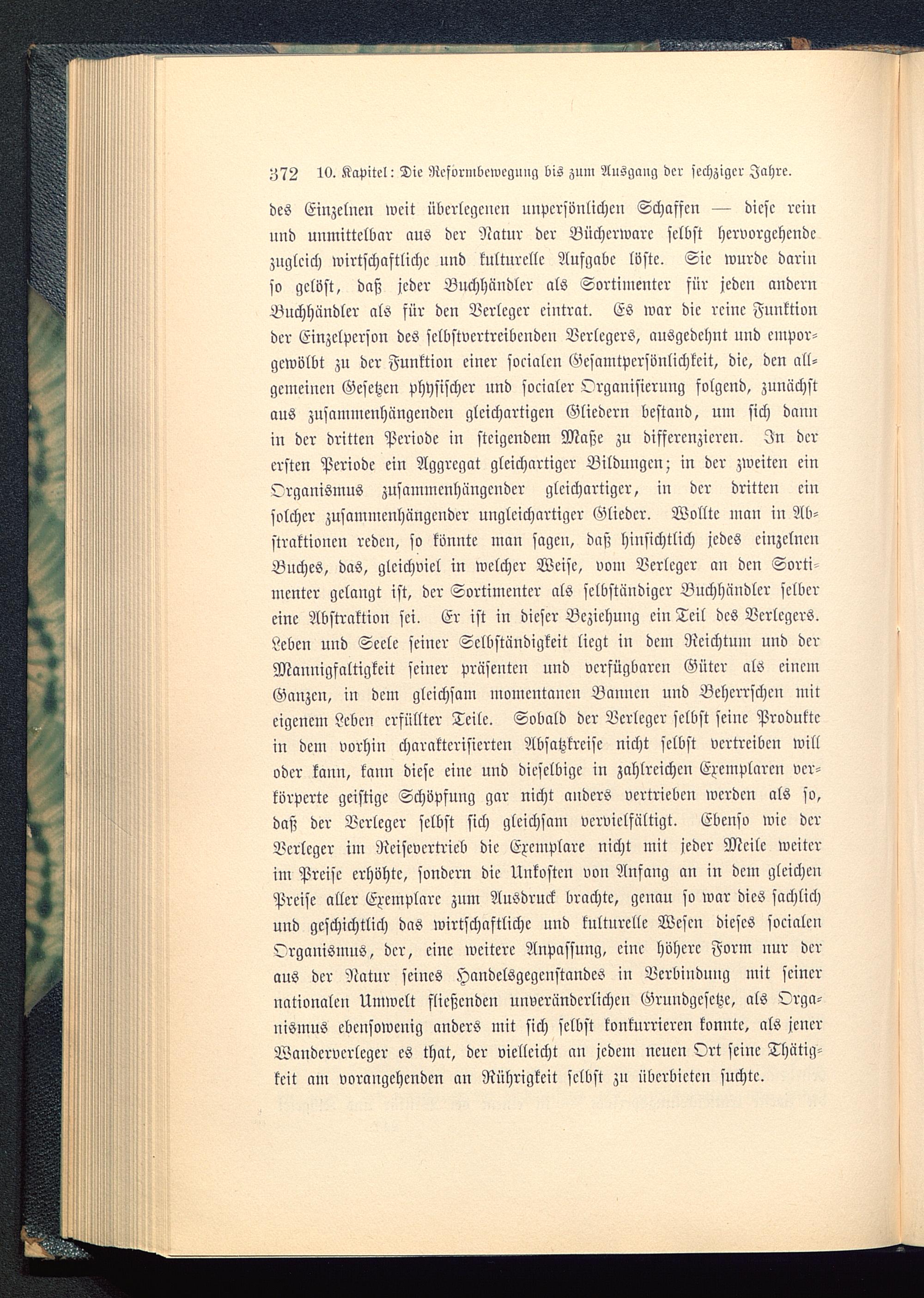 des Einzelnen weit überlegenen nnpcrsönlichen Schaffen — diese reinund unmittelbar aus der Natur der Büchcrwarc selbst hervorgehendezugleich wirtschaftliche und kulturelle Aufgabe löste. Sic wurde darinso gelöst, daß jeder Buchhändler als Sortiinenter für jeden andernBuchhändler als für den Verleger eintrat. Es war die reine Funktionder Einzelperson des sclbstvertreibcnden Verlegers, ausgedehnt und empor-gcwölbt zu der Funktion einer socialen Gesamtpcrsönlichkeit, die, den all-gemeinen Gesetzen physischer und socialer Organisierung folgend, zunächstaus zusainmenhängendcn gleichartigen Gliedern bestand, um sich dannin der dritten Periode in steigendem Maße zu differenzieren. In derersten Periode ein Aggregat gleichartiger Bildungen; in der zweiten einOrganismus zusammenhängender gleichartiger, in der dritten einsolcher zusammenhängender ungleichartiger Glieder. Wollte mau in Ab-straktionen reden, so könnte man sagen, daß hinsichtlich jedes einzelnenBuches, das, gleichviel in welcher Weise, vom Verleger an den Sorti-inenter gelangt ist, der Sortimenter als selbständiger Buchhändler selbereine Abstraktion sei. Er ist in dieser Beziehung ein Teil des Verlegers.Leben und Seele seiner Selbständigkeit liegt in dem Reichtum und derMannigfaltigkeit seiner präsenten und verfügbaren Güter als einemGanzen, in dem gleichsam momentanen Bannen und Beherrschen miteigenem Leben erfüllter Teile. Sobald der Verleger selbst seine Produttein dem vorhin charakterisierten Absatzkreise nicht selbst vertreiben willoder kann, kann diese eine und dieselbigc in zahlreichen Exemplaren ver-körperte geistige Schöpfung gar nicht anders vertrieben werden als so,daß der Verleger selbst sich gleichsam vervielfältigt. Ebenso wie derVerleger im Neisevcrtrieb die Exemplare nicht mit jeder Meile weiterim Preise erhöhte, sondern die Unkosten von Anfang an in dein gleichenPreise aller Exemplare zum Ausdruck brachte, genau so war dies sachlichund geschichtlich das wirtschaftliche und kulturelle Wesen dieses socialenOrganismus, dcr, eine weitere Anpassung, eine höhere Form nur deraus der Natur seines Handelsgegenstandes in Verbindung mit seinernationalen Umwelt fließenden unveränderlichen Grundgesetze, als Orga-nismus ebensowenig anders mit sich selbst konkurrieren konnte, als jenerWandcrvcrleger es that, der vielleicht an jedem neuen Ort seine Thätig-keit am vorangehenden an Rührigkeit selbst zu überbieten suchte.