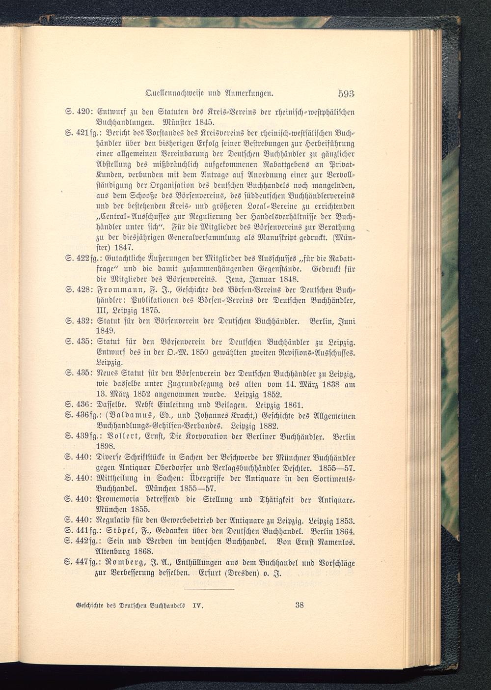 S. 420: Entwurf zu den Statuten des Kreis-Vereins der rheinisch-wcstphälischcnBuchhandlungen. Münster 1845.