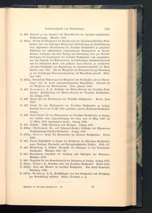 S. 440: Regulativ für deu Gewerbebetrieb der Antiquare zu Leipzig. Leipzig 1853.S. 441 fg.: Stöpel, F., Gedanken über den Deutschen Buchhandel. Berlin 1864.S. 442fg.: Sein und Werden im deutschen Buchhandel. Von Ernst Namenlos.Altenburg 1863.