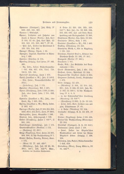 Steche, Rich.: Znr Geschichte des Buch-einbands I 261.Steels (Antwerpen), Joh . I 459. 772.Steffens, Heinr., Philosoph III 524.Stegmann'sche Druckerei (Halle ) II 350.Stegmann (Laibach), Lconh., Buchbinder