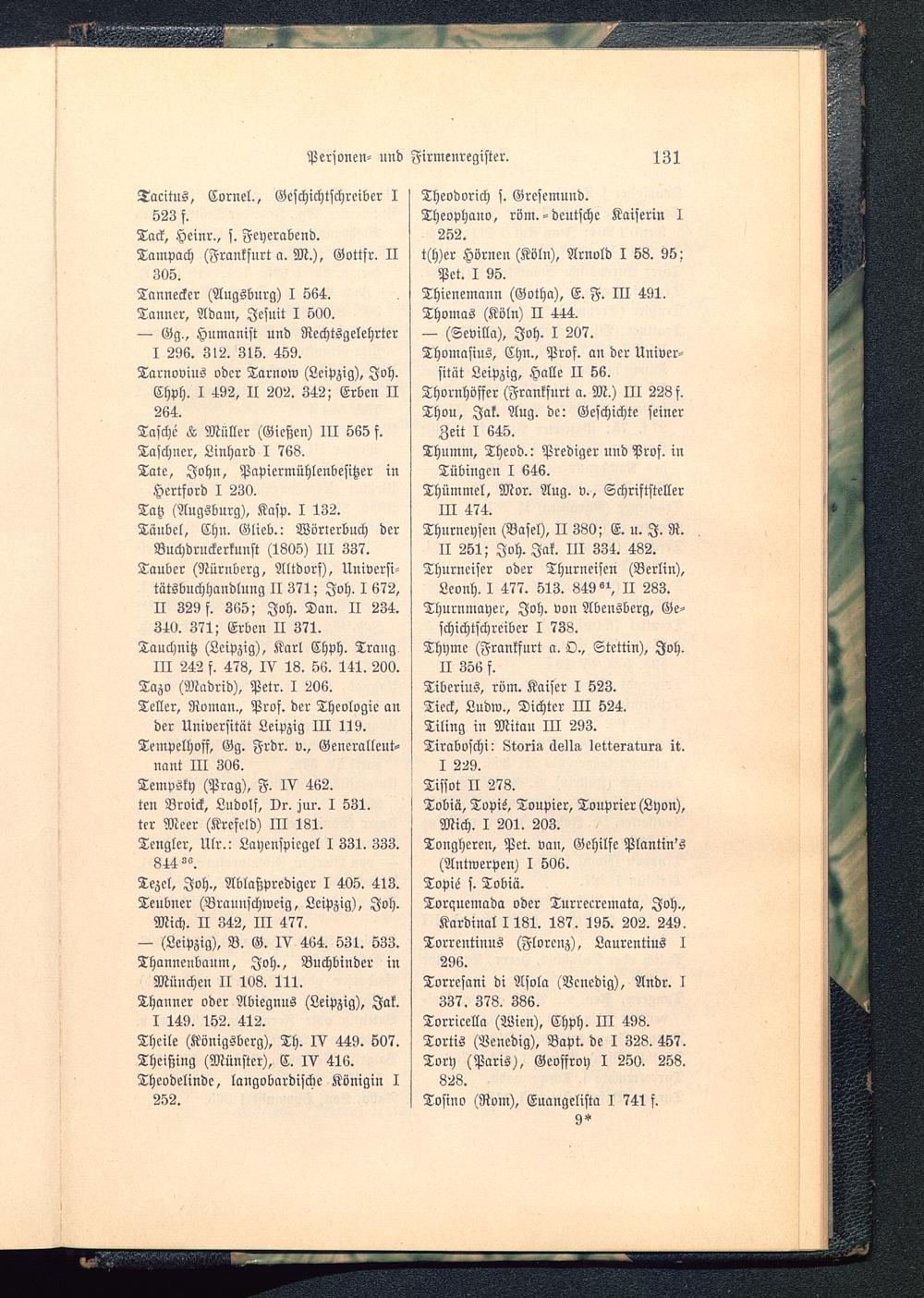 Tezcl, Joh., Ablaßprediger I 405. 413.Tcubner (Brauuschweig, Leipzig), Joh .Mich. II 342, III 477.