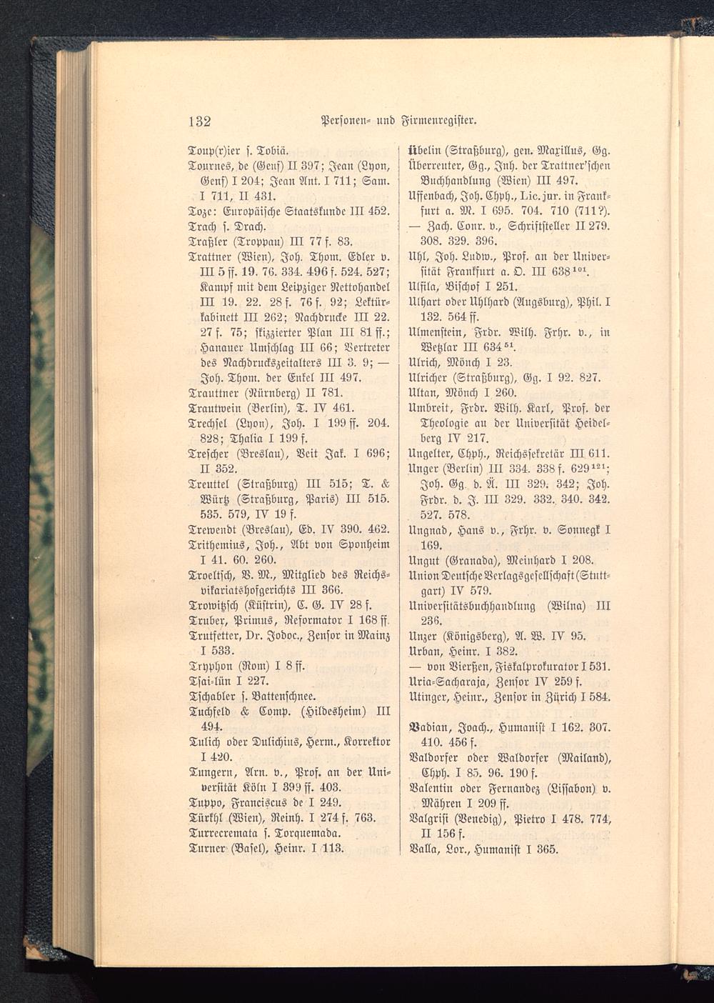 vikariatöhofgerichts III 366.Trowitzsch (Küstriu), C. G. IV 28 f.Trüber, Primus, Reformator I 163 ff.Trutfetter, Dr. Jodoc., Zensor in Mainz