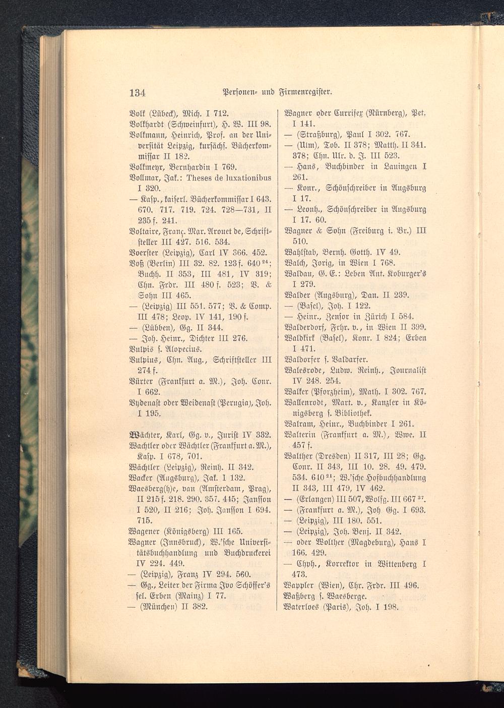 Wappler (Wien ), Chr. Frdr. III 496.Waßbcrg s. Wacsbcrge.Watcrlocs (Paris), Joh . I 198.