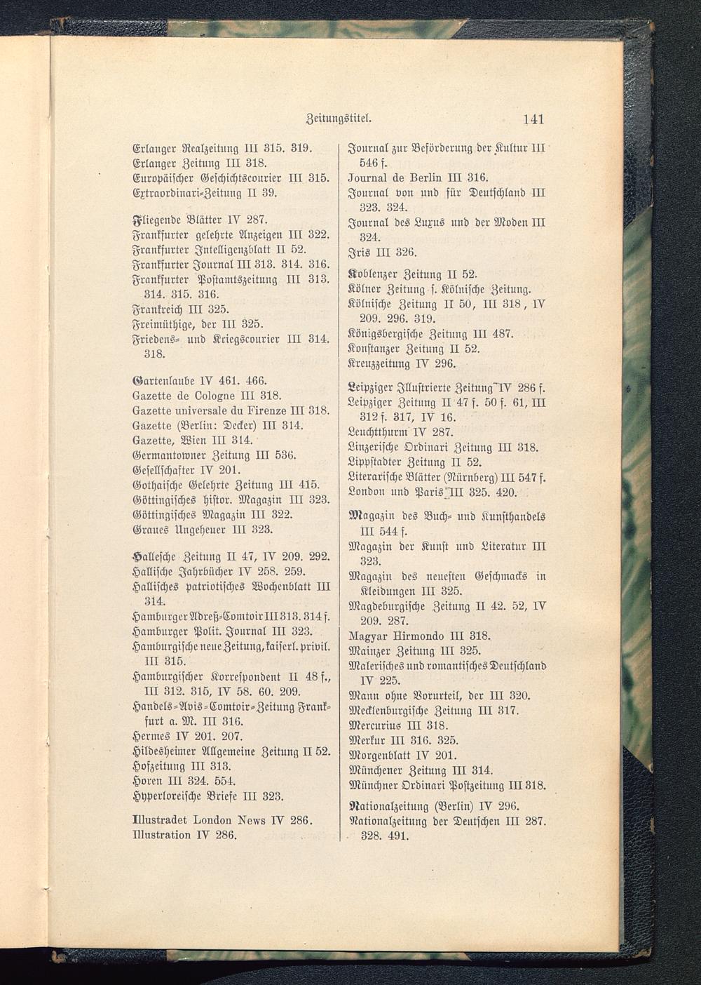 Leipziger Illustrierte Zeitung'IV 286 f.Leipziger Zeitung II 47 f. 50 f. 61, III