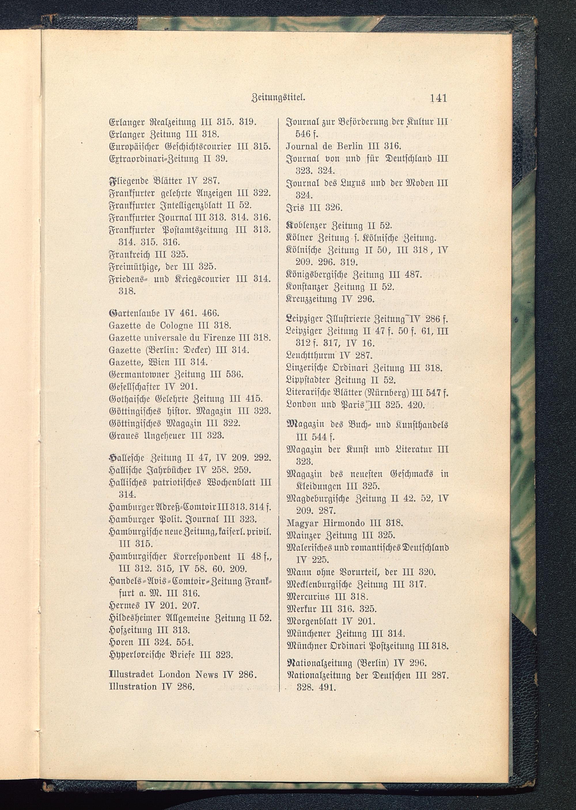 Kölnische Zeitung II 50, III 318, IV