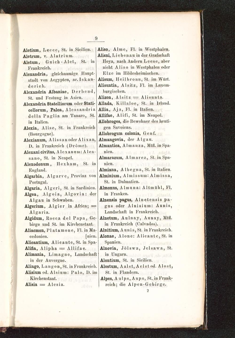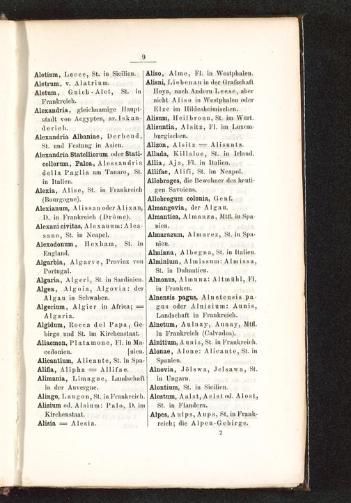 Algaria .Algidum, Rocca del Papa, Ge-birge und St. im Kirchenstaat .Aliacmon, Platamone, Fl. in Ma-